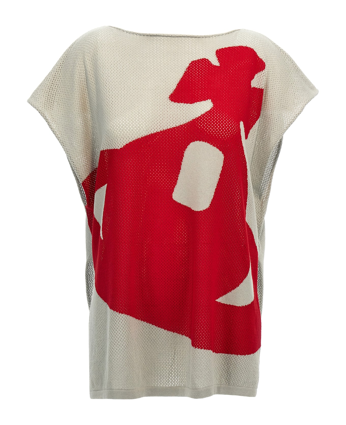 Knitted openwork cotton top with front 'Intarsia Pixel Orb Beach' jacquard, raw cut hem, crew neck, sleeveless with dropped shoulder and wide armholes, side slits. Composition: 100% cotton