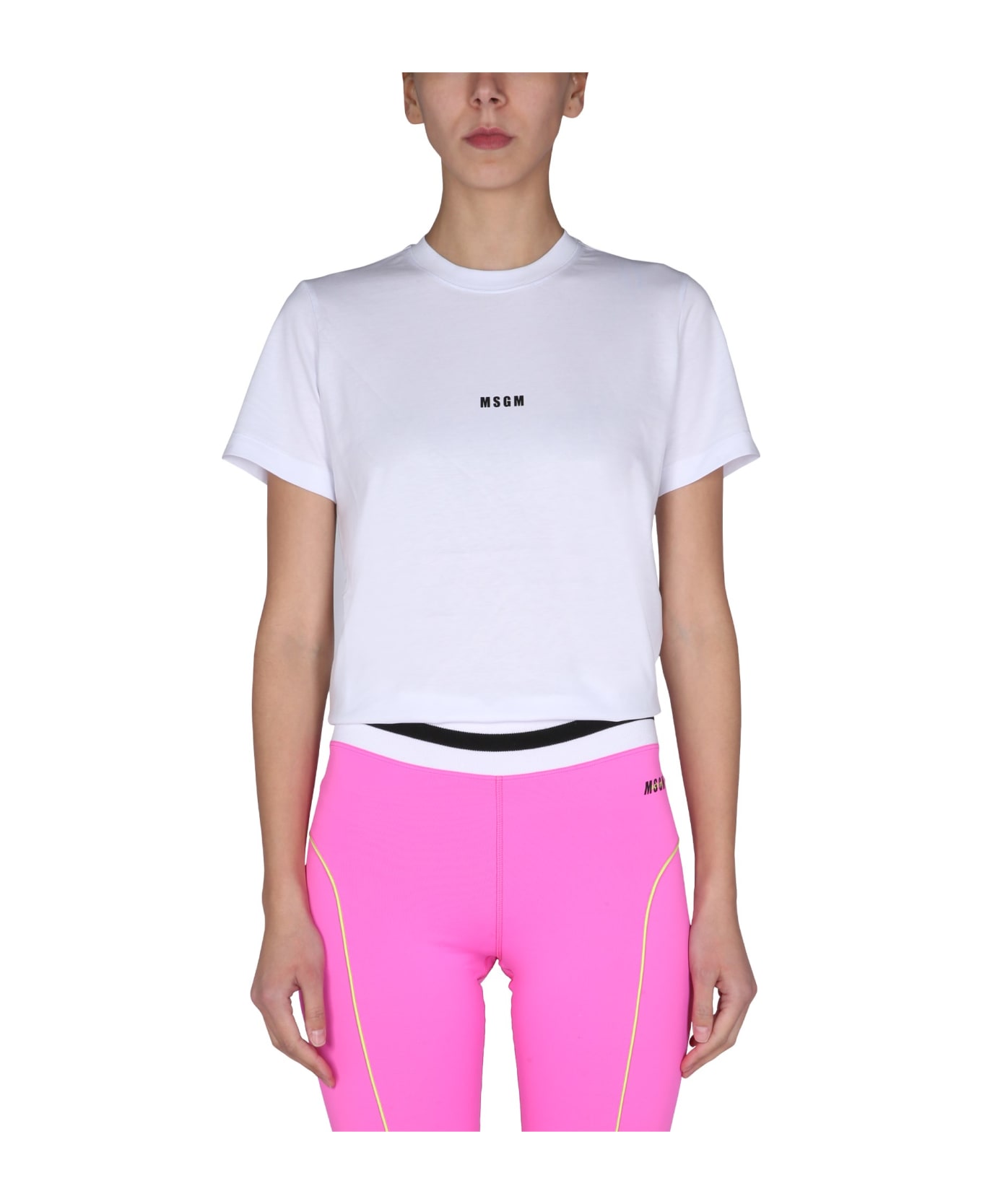 - Crew Neck- Front Micro Logo Print- Regular Fit- 100% Cotton- Made In Italy- Model Is 180 Cm Tall And Wears Size S