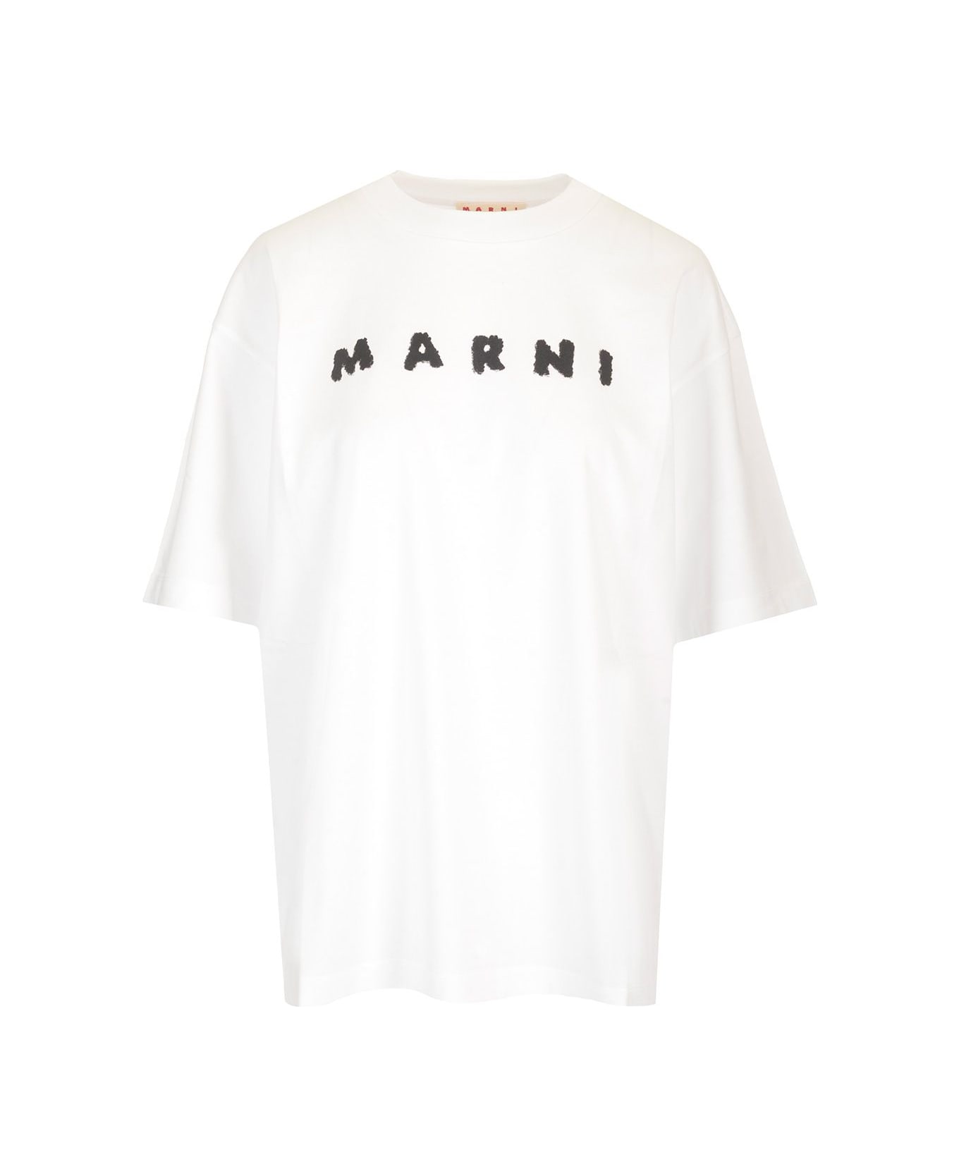 Light blue cotton jersey short-sleeved T-shirt by Marni with contrasting logo printed on the front. Composition: Primary Fabric: 100% Cotton Knit