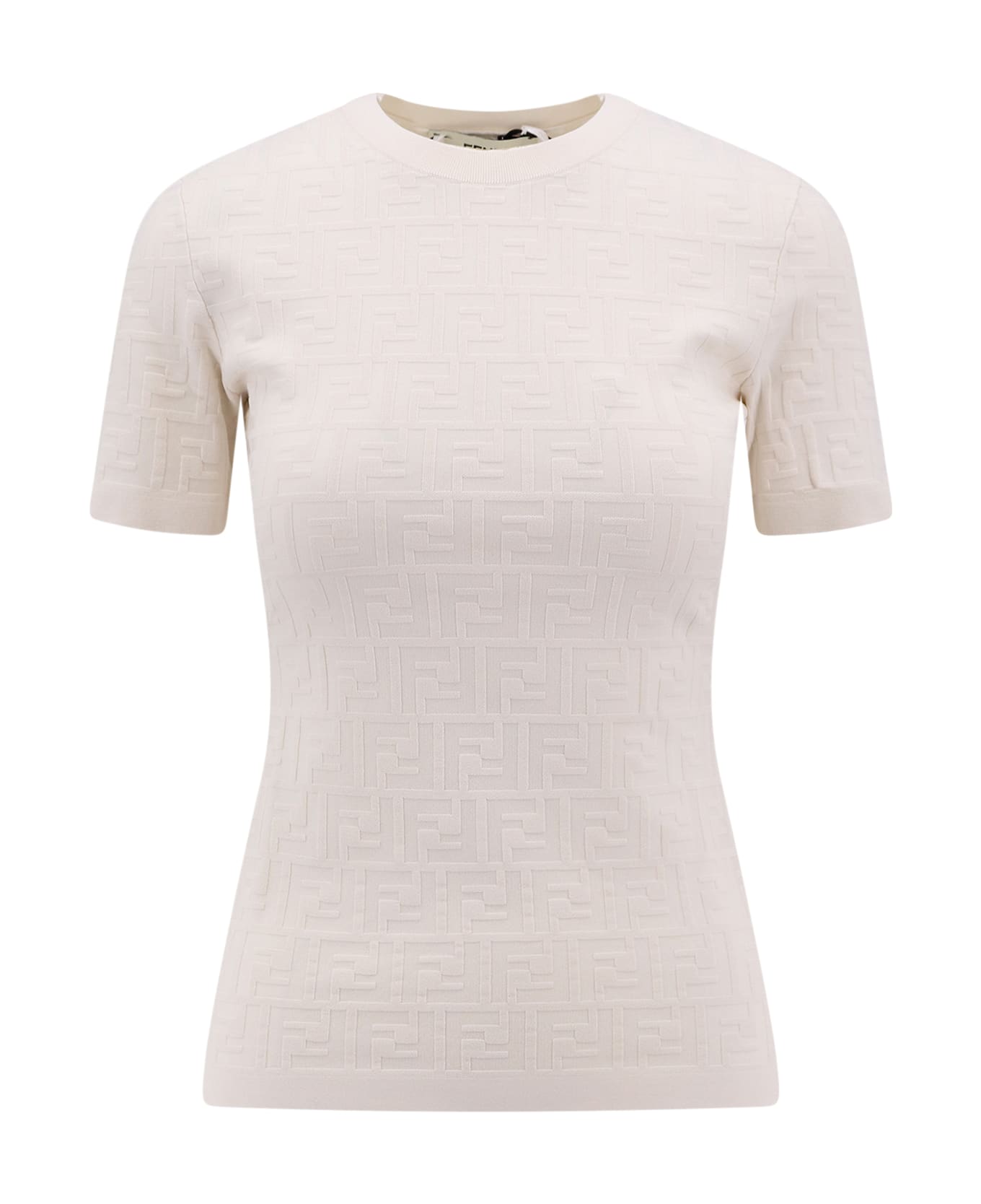 - Ribbed Crew-neck - Short Sleeve - All-over Ff Motif - Made In Italy - 55% Viscose 28% Polyamide 17% Elastane