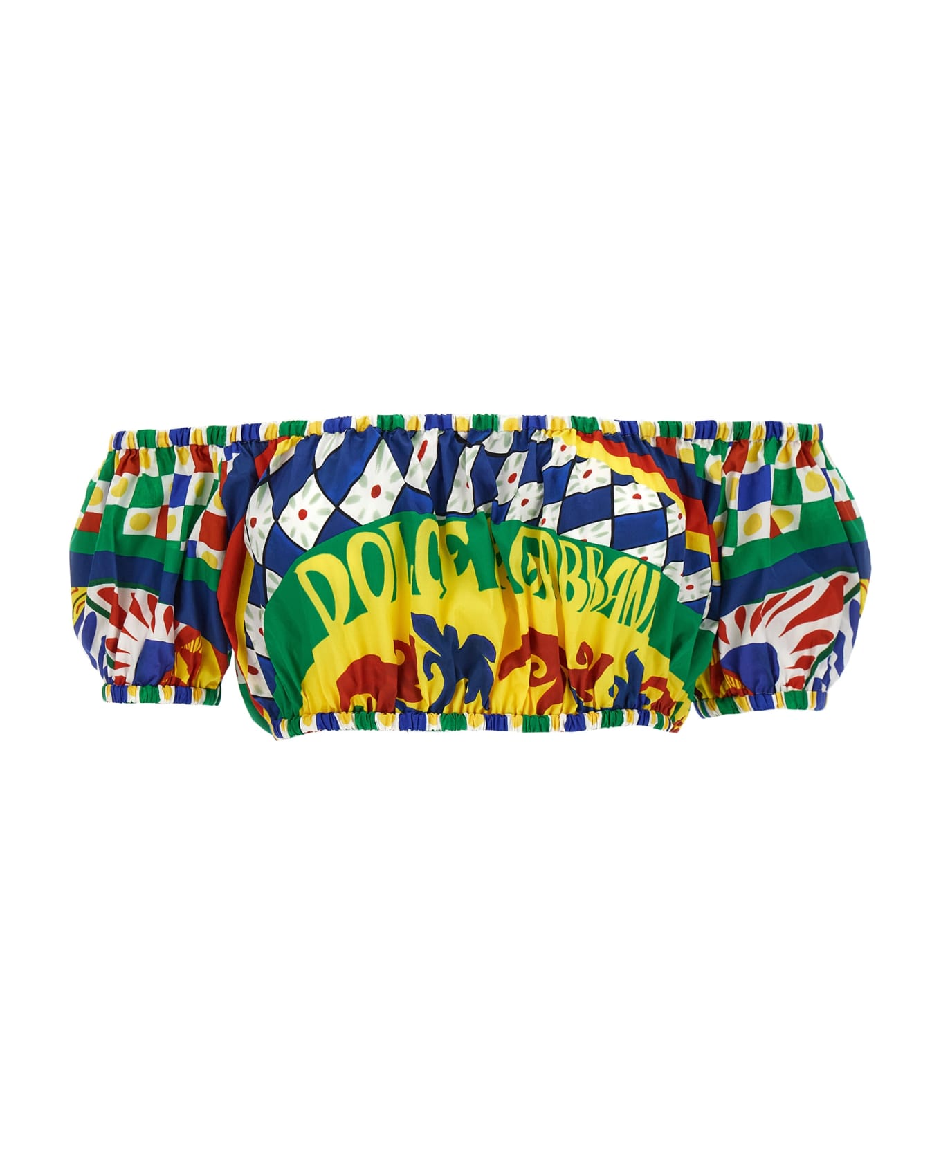 Cotton top with all-over 'Carretto' print, cropped style and short sleeves. Composition: 100% cotton