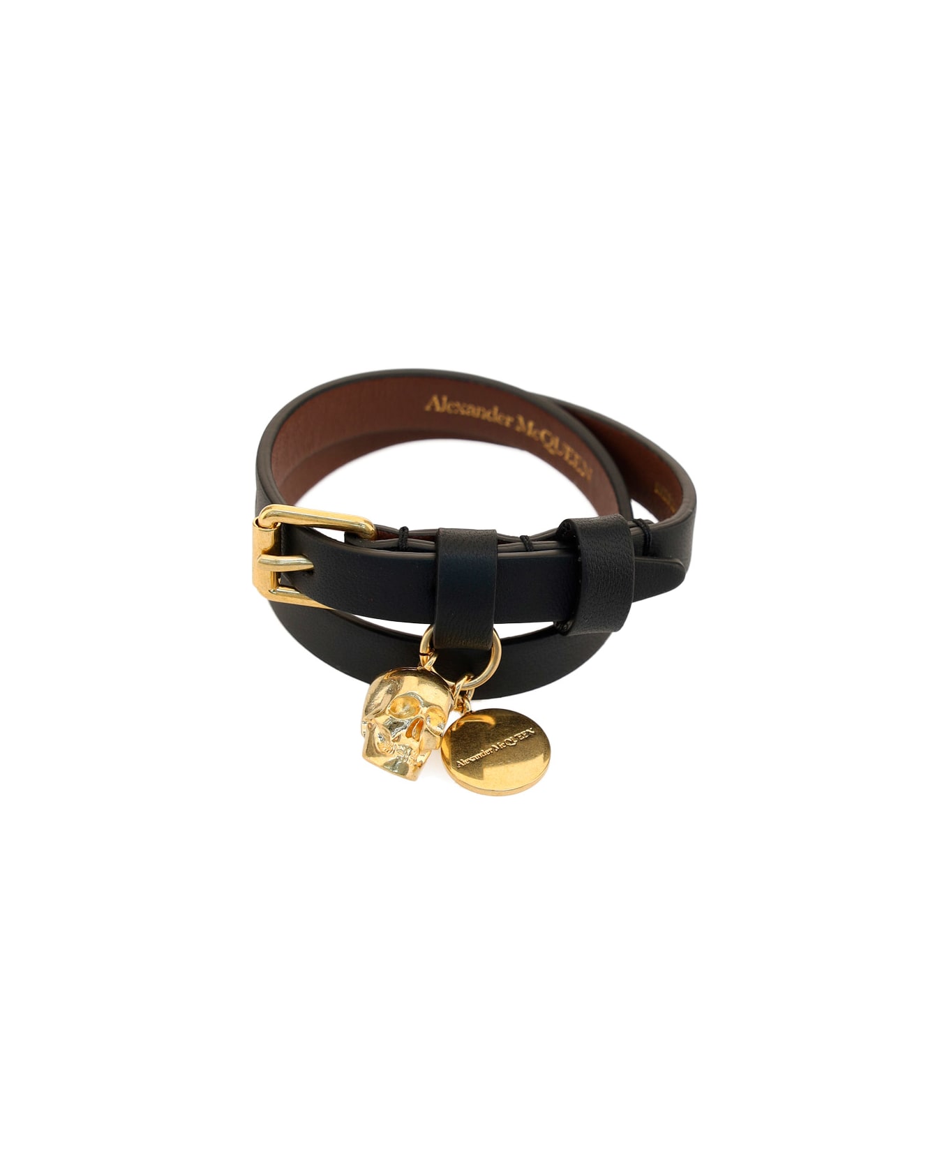 Black calfskin bracelet by alexander mcqueen, adjustable, two gold-ton pendant. Composition: 100% % Calf Leather Bos Taurus