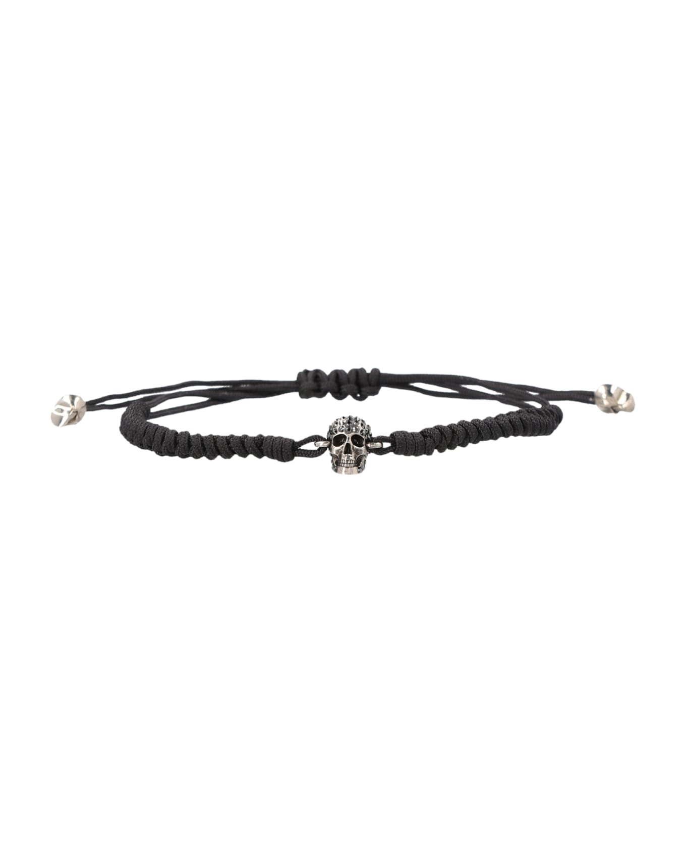 'Skull' adjustable woven cord bracelet with crystal embellished charm. Composition: