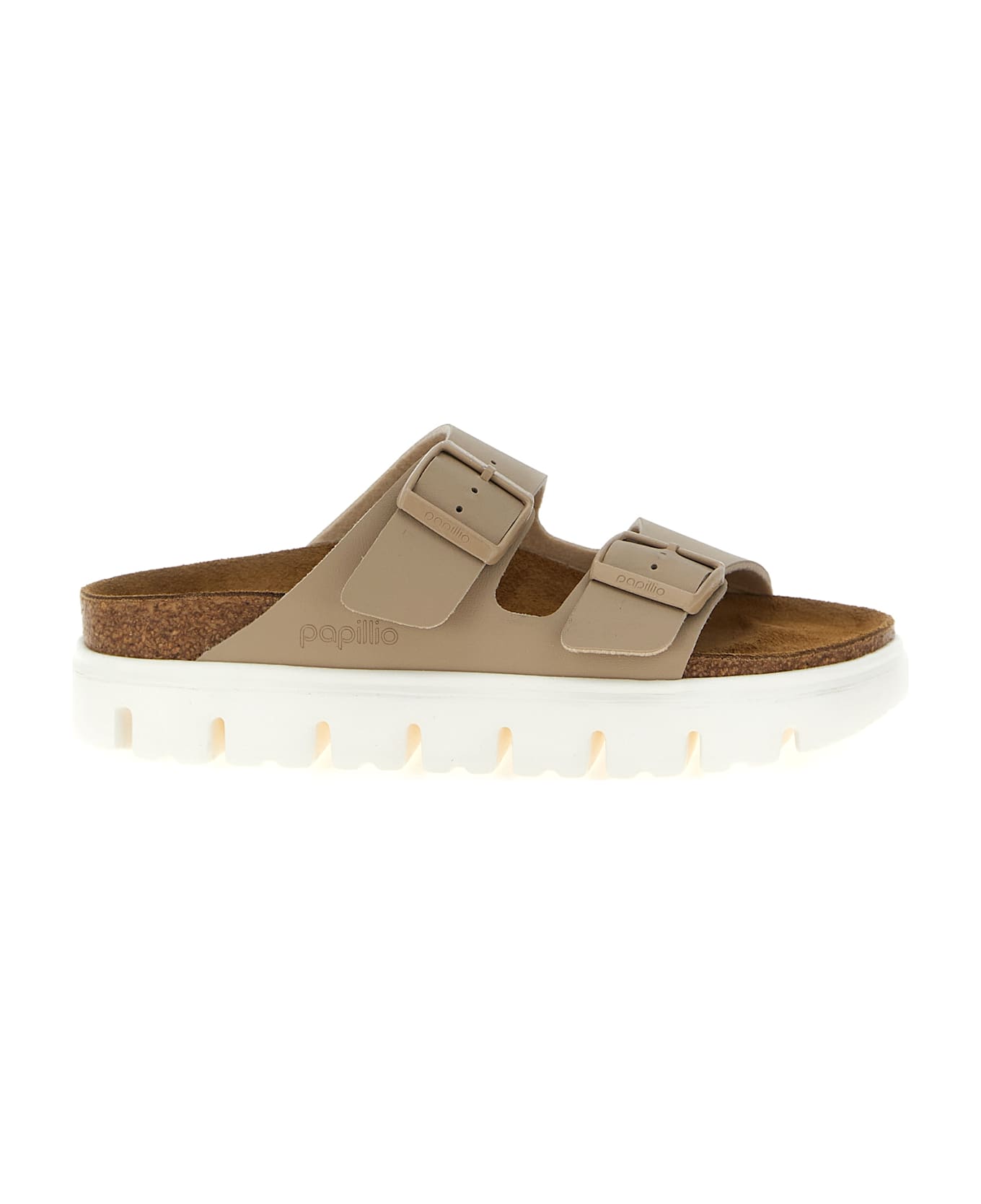 'Arizona PAP Chunky' Birko-Flor sandals® with cork and latex anatomical footbed, adjustable straps, suede insole with platform, plastic sole. Papillio line by Birkenstock.