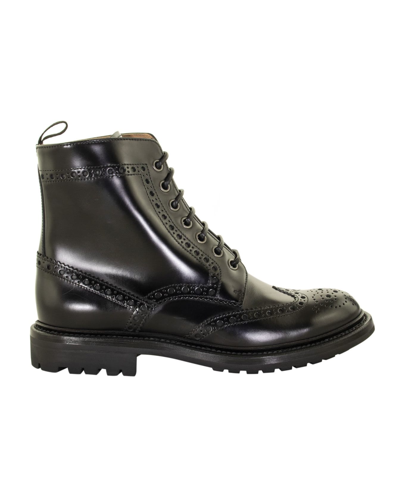 Lace-up derby boot Calf leather with polished black Waxed cotton laces Metal eyelets Cotton pull-on tab to back Commando rubber Internal lining for longevity of wear Handwritten shoe info to lining Church's crest to sock and sole Composition: 100% Leather