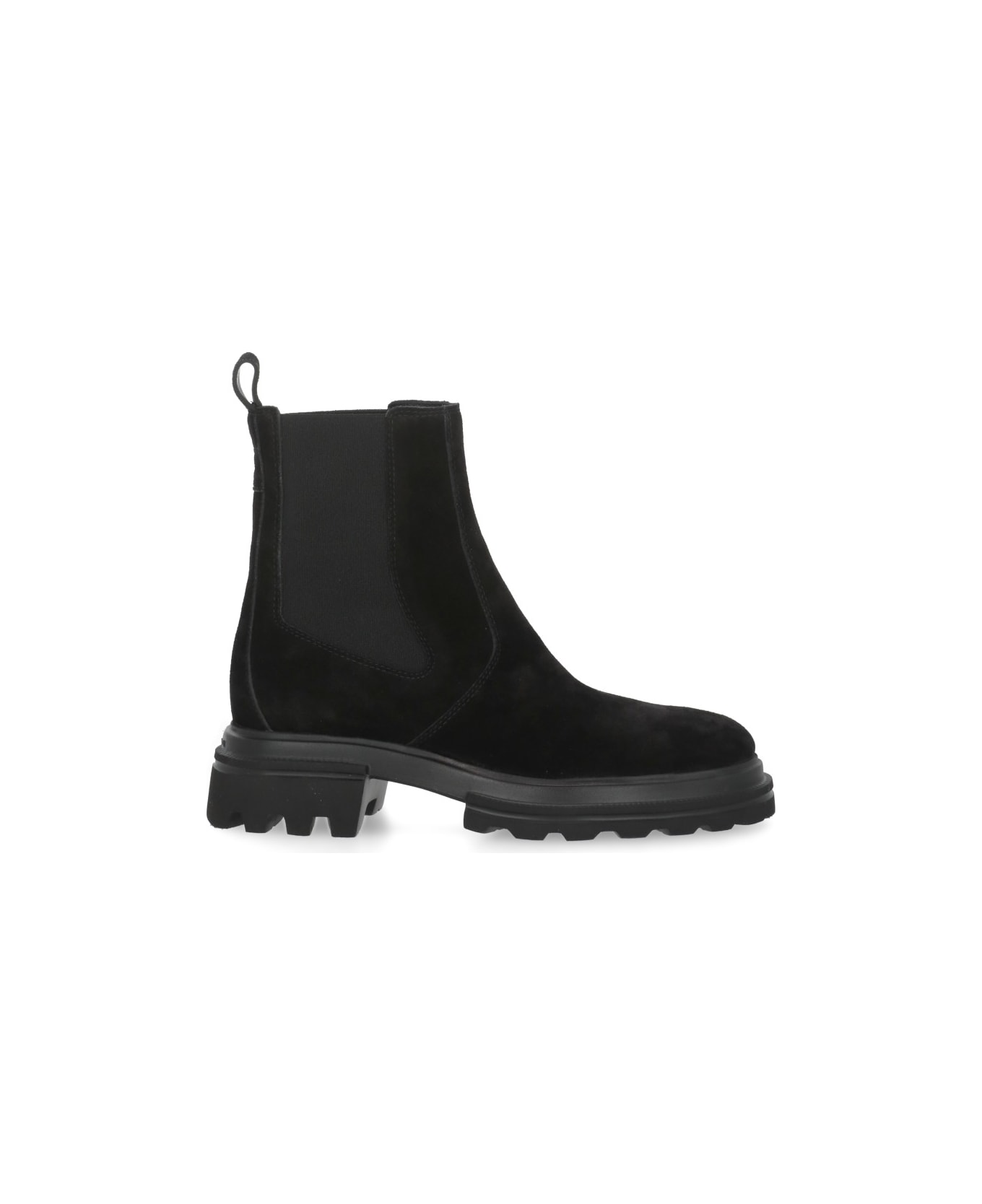 - Hogan black suede leather woman's Chelsea boots - Round toe - Side elastic inserts - Raised rubber sole (5 cm)