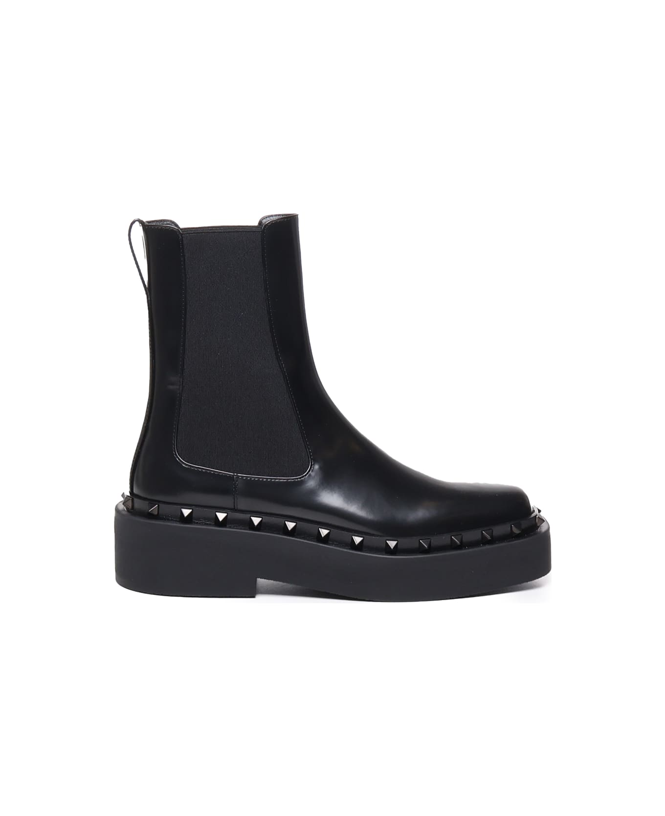Black M-way Rockstud Beatle Ankle Boots from Valentino Garavani -Made of calfskin -Characteristic Rockstud detail -Ankle length -Elasticated side panels -Square toe -Tab on the heel -Rubber sole -Made in Italy -Colour: Black -100% Calfskin