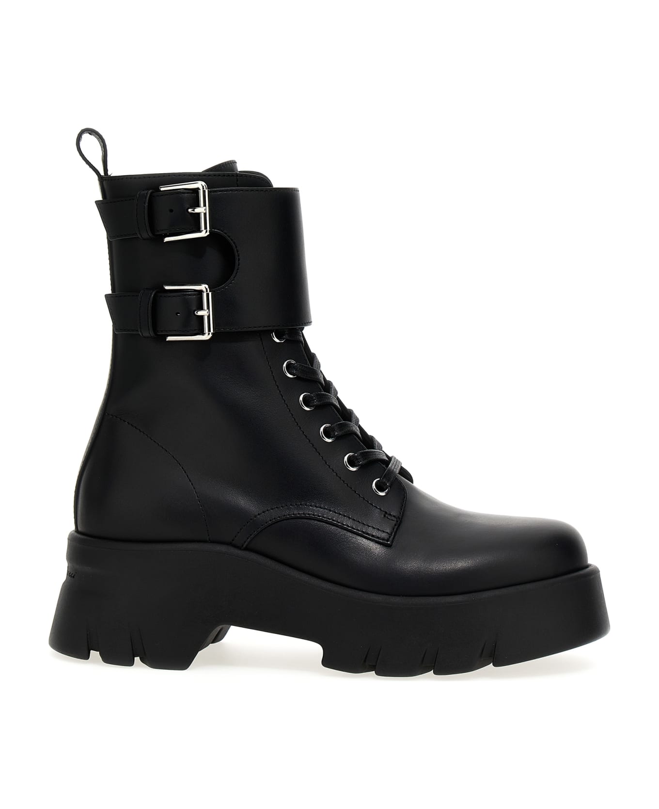 Marloe' leather amphibious boots with laces, side zip and adjustable straps, oversized rubber sole.
