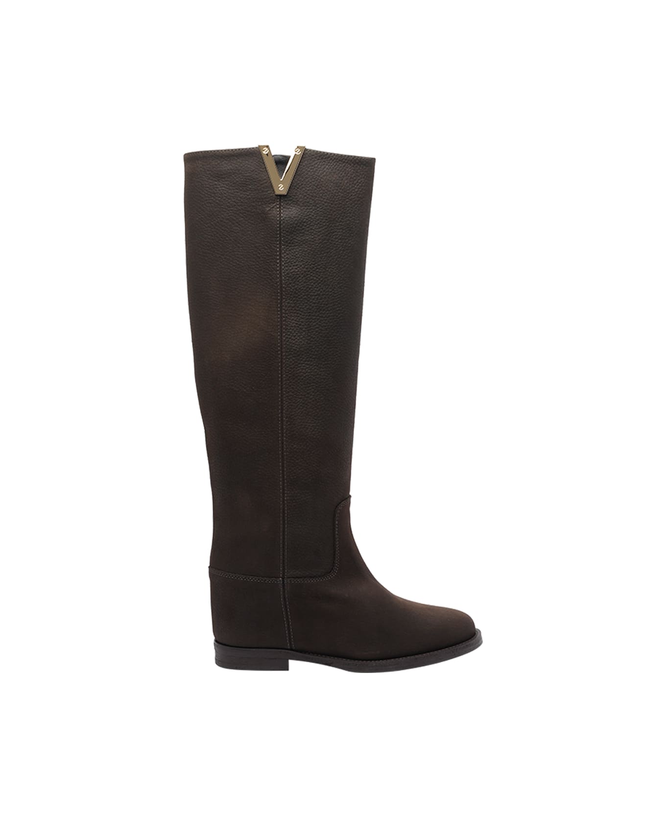 Via Roma 15 brown V boots, round toe, lateral V logo, leather model