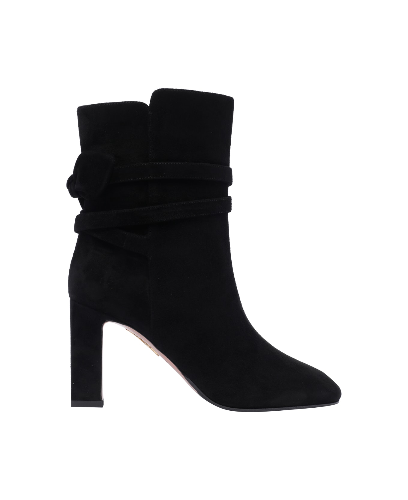 Aquazzura black Very Bow Tie pump booties, suede upper, pointed toe, bow detail around the ankle Composition: 100% Suede Leather/leather Sole