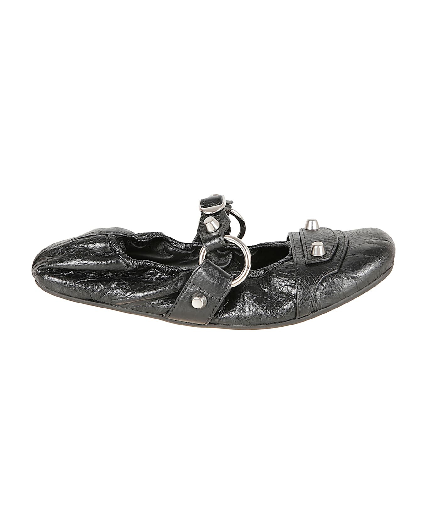 Arena lambskin Ballet flats Rounded toe Silver ABS studs and buckles Tone-on-tone insole Black sole Composition: 100% Lamb Skin