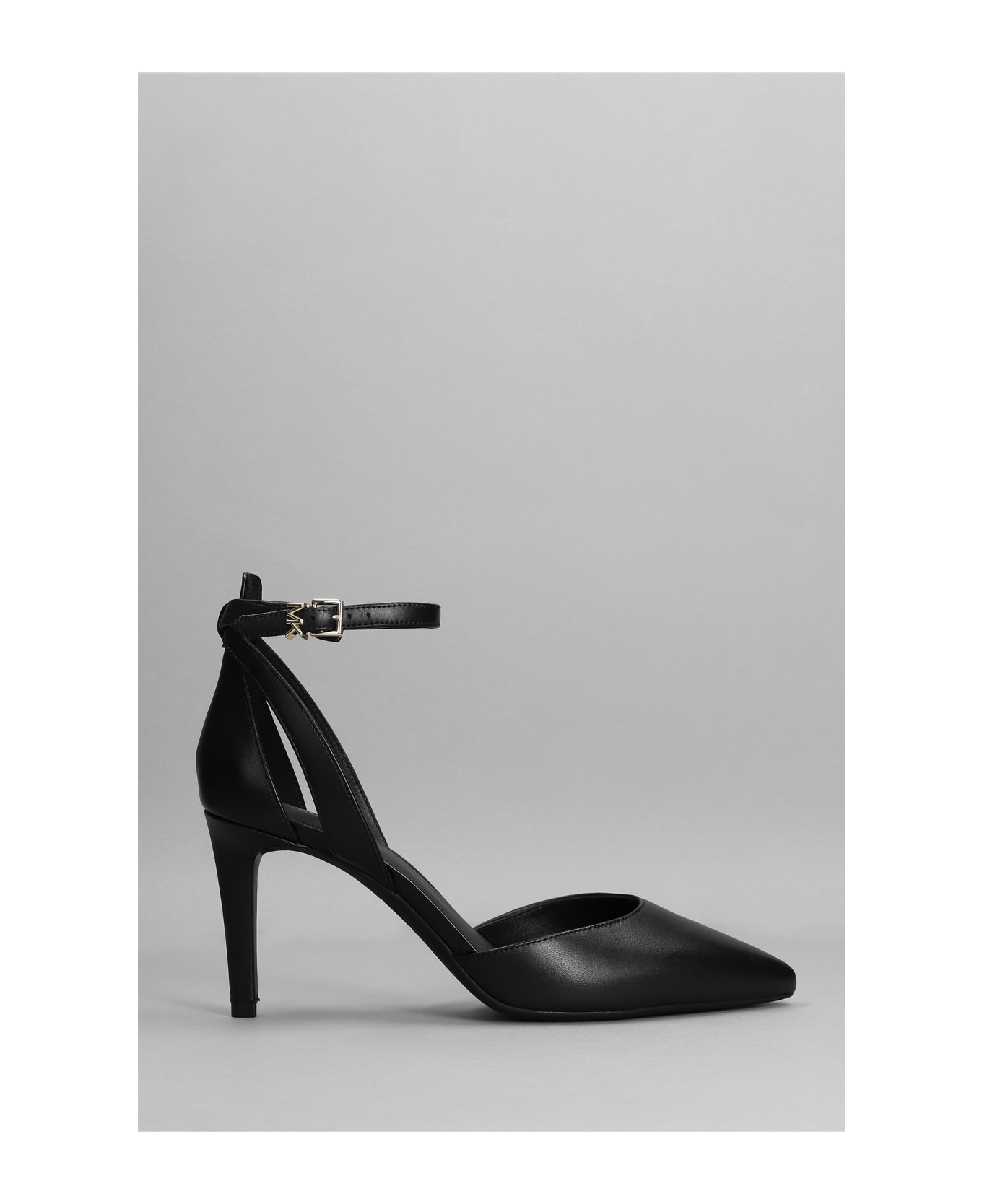 Mirabel Pumps in black leather, pointed toe, ankle strap, heel 90 mm, 100% leather, Made in Vietnam