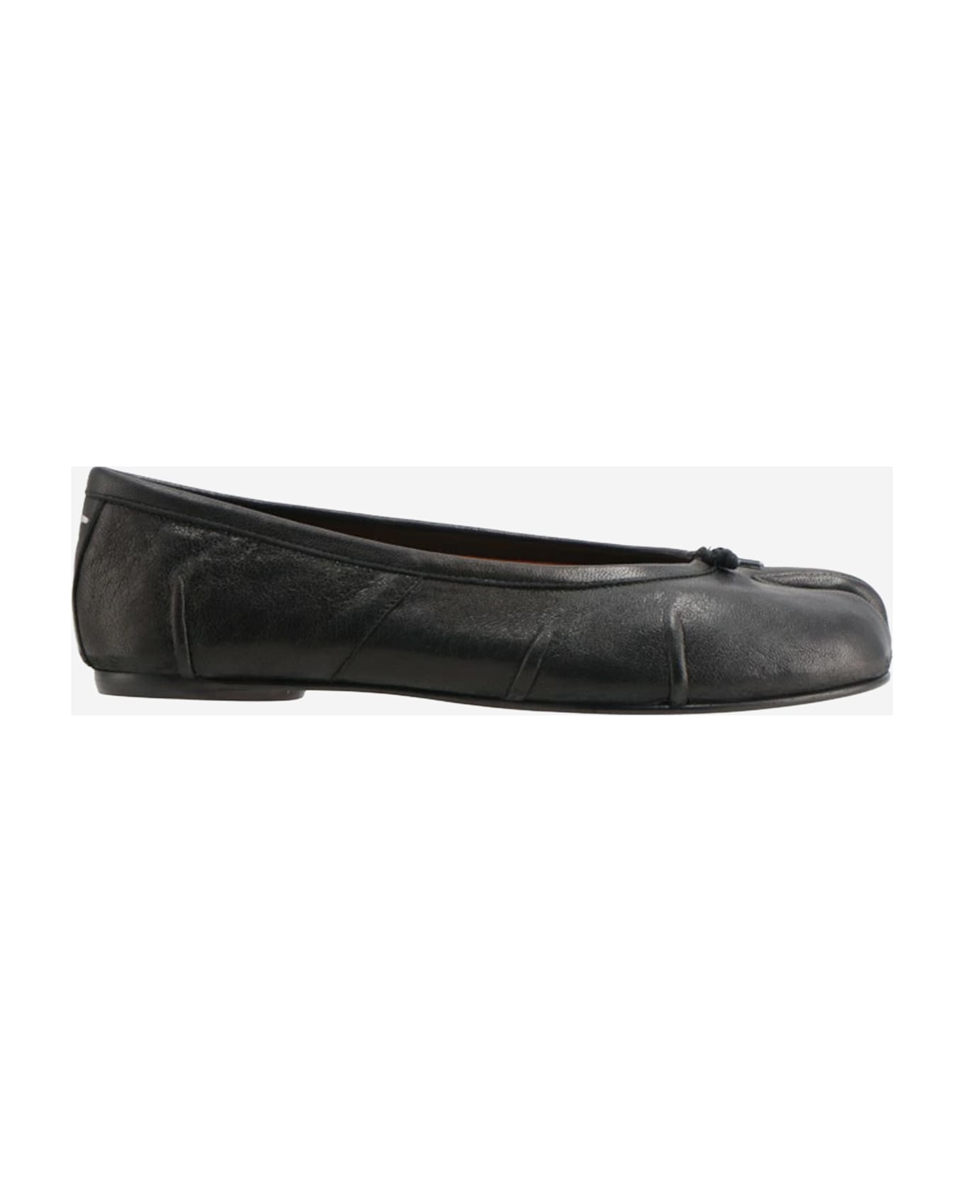 Ballerina flats made of leather Tabi toe Slip-on design Cotton bow on the front Leather sole Iconic single stitching on the back Black Made in Italy Composition: 100% leather