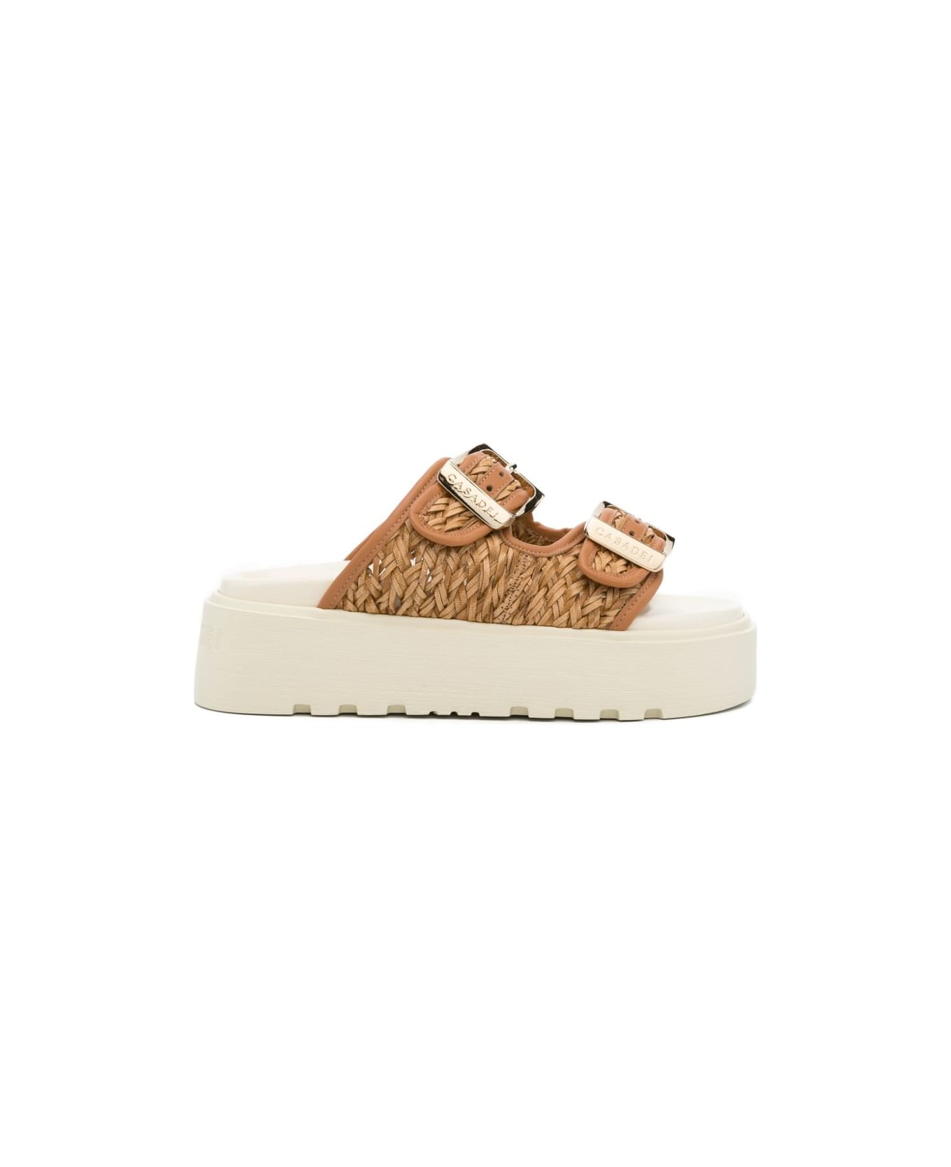 light brown/cream woven design platform sole double buckle-fastening straps textured sole open toe Composition: Natural (other)->rubber100. , 0% Synthetic->rayon45. , 0% Synthetic->polyurethane100. , 0% Synthetic->polyester26. , 0% Natural (veg)->cotton29. , 0%