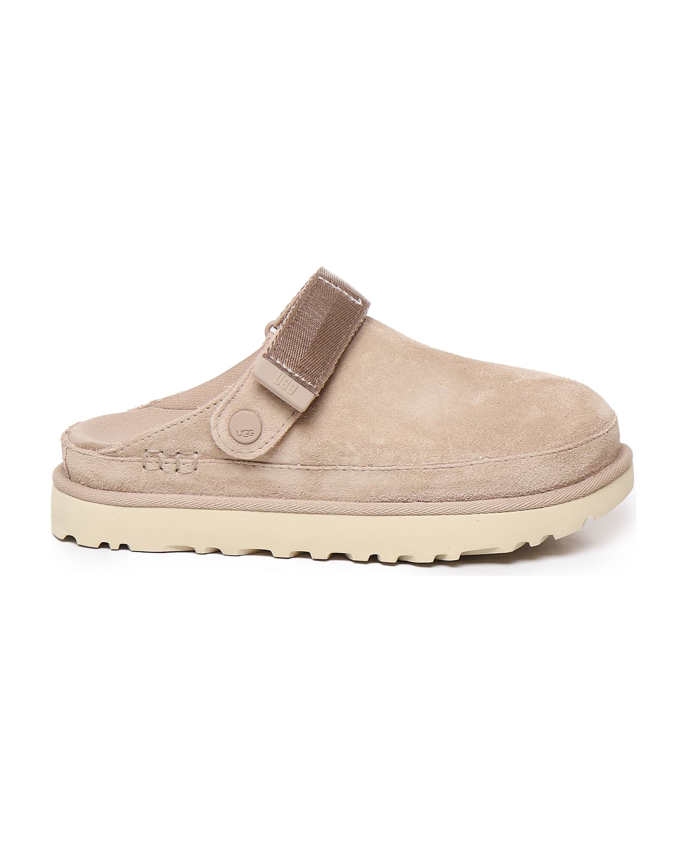 -Suede upper -Adjustable heel strap -EVA midsole -Sugarcane EVA outsole -Embossed UGG® logo -Color: Sand