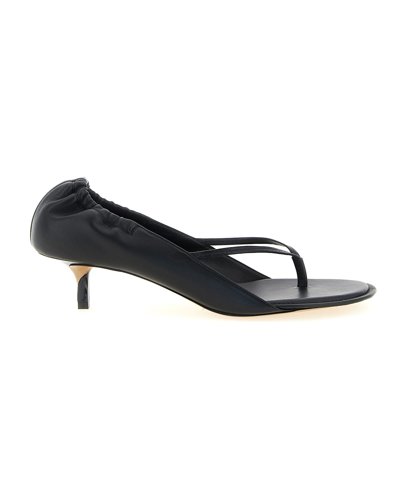 'Les Sandales Nu-Pieds B' nappa sandals in thong style, round toe, embossed logo on the side, elastic back, 'Rond-Carré' heel, lambskin insole and lining, asymmetrical woven heel, leather sole. Composition: 100% lamb leather (Ovis aries)
