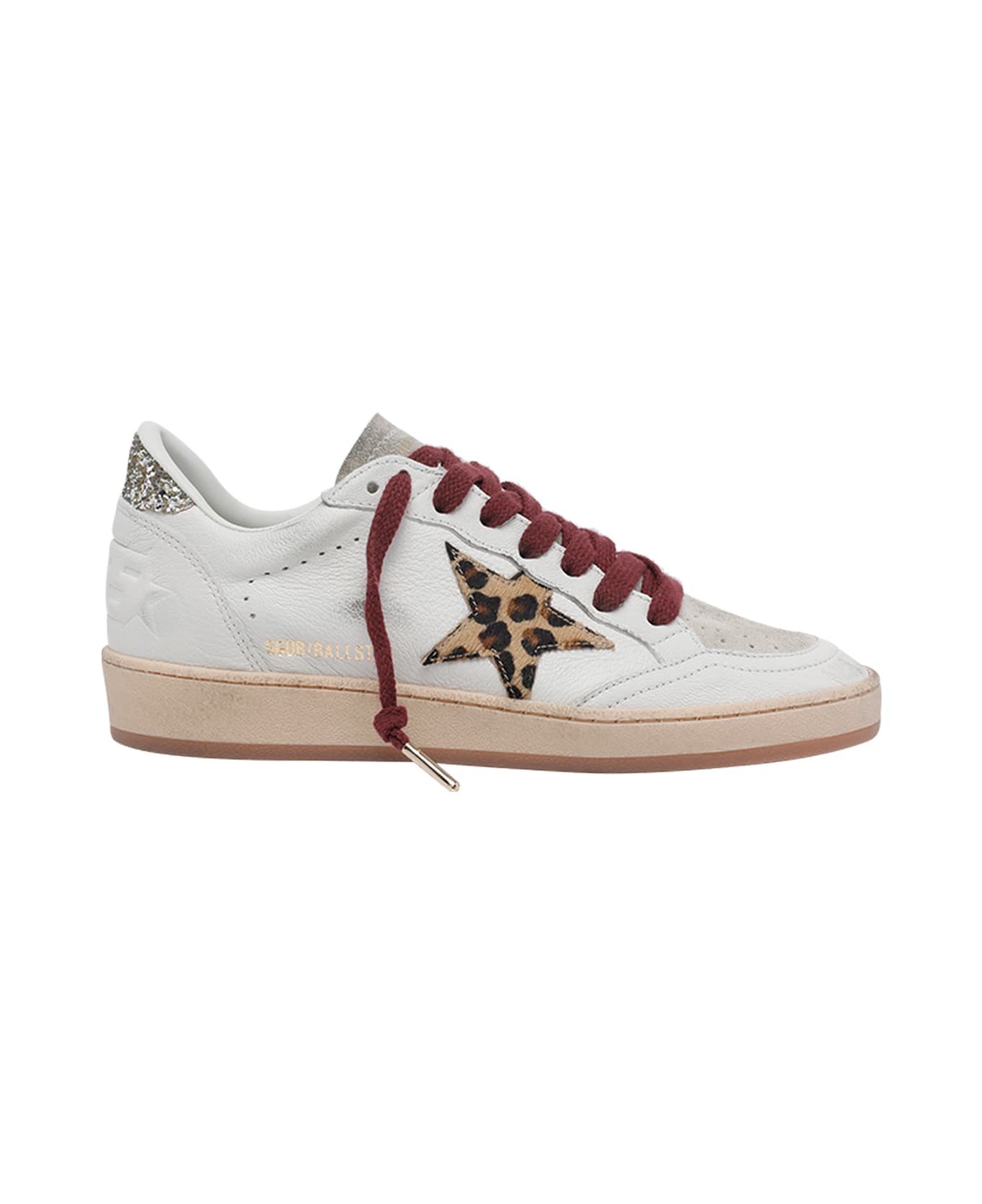 Golden Goose white Ballstar sneakers, laces closure, round toe, logo, leather upper