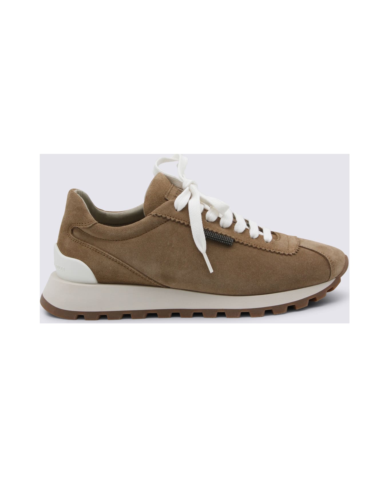 Brown leather sneakers from Brunello Cucinelli featuring round toe, cotton lace up fastening, lateral detail and rubber sole. Composition: _cover, 100% Le - Sole, 100% Elastodiene