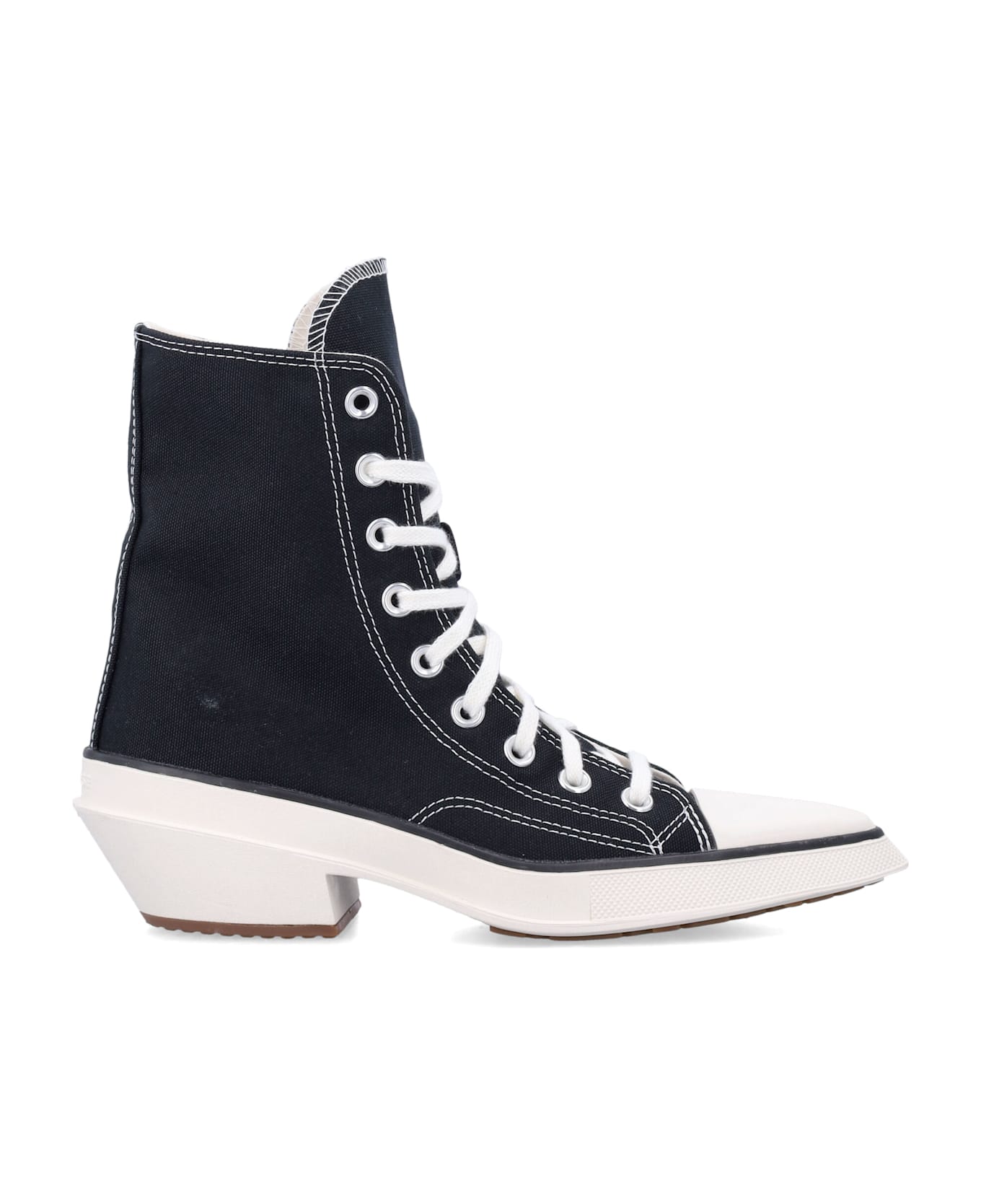 Chuck 70 De Luxe Pointed Woman's Shoes By Converse. Featuring: High-top Canvas Upper Pointed Toe With Cap Lace-up Closure Nine Metal Eyelets Ortholite Cushioning Iconic Chuck Taylor Ankle Patch And Signature All Star License Plate Chunky Kitten Heel Heel: 4,5 Cm