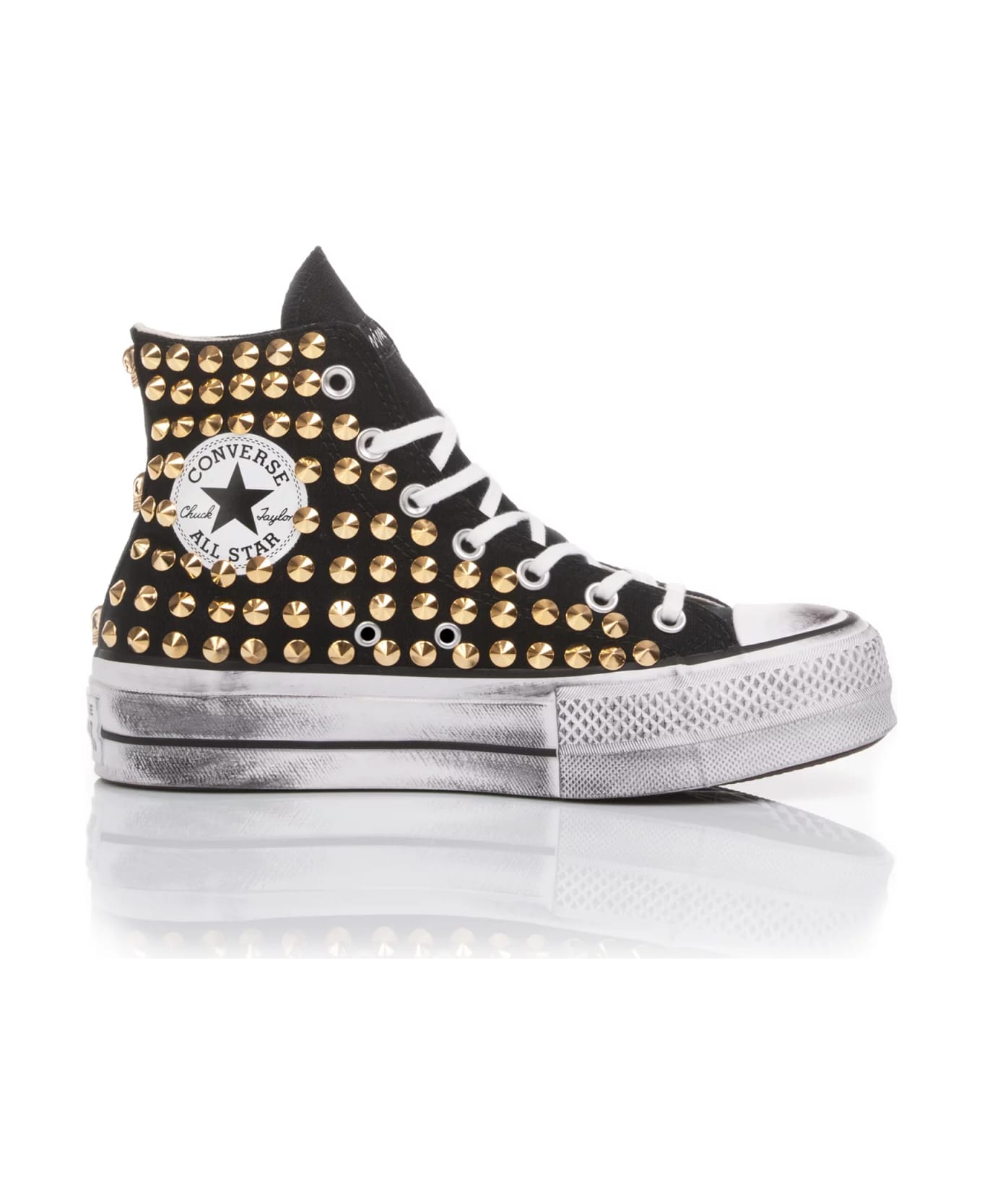 Sides with gold studs, back with gold skulls, vintage dirt, white original shoelaces.