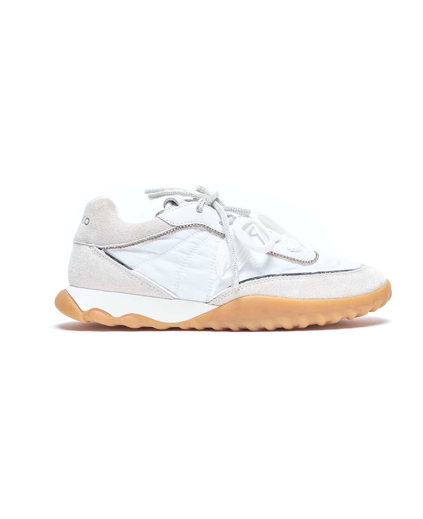 Pinko white Gea sneakers, round toe, suede and fabric upper, double lace closure Composition: 100% Suede, Leather And Fabric, Rubber Sole