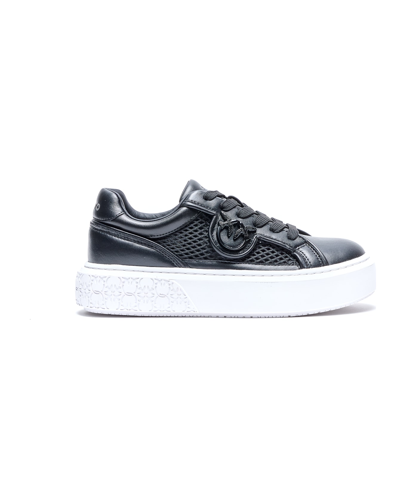 Pinko black Yoko sneakers, round toe, lateral tone on tone logo, platform sole, laces closure Composition: 100% Leather And Fabric, Rubber Sole