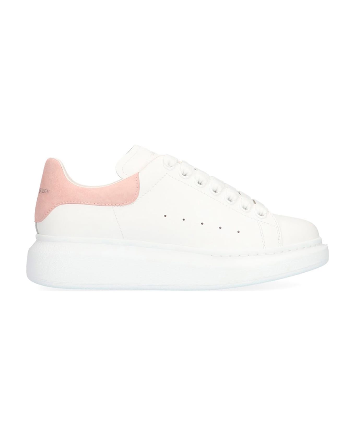 Alexander McQueen iconic 'Oversize sole' sneakers featuring a contrasting pink heel tab and logo print. Composition: 100% calf leather (bos taurus)
