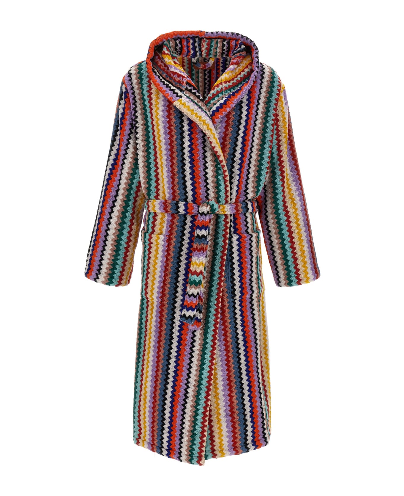 'Riverbero' cotton terry hooded bathrobe with zigzag pattern.