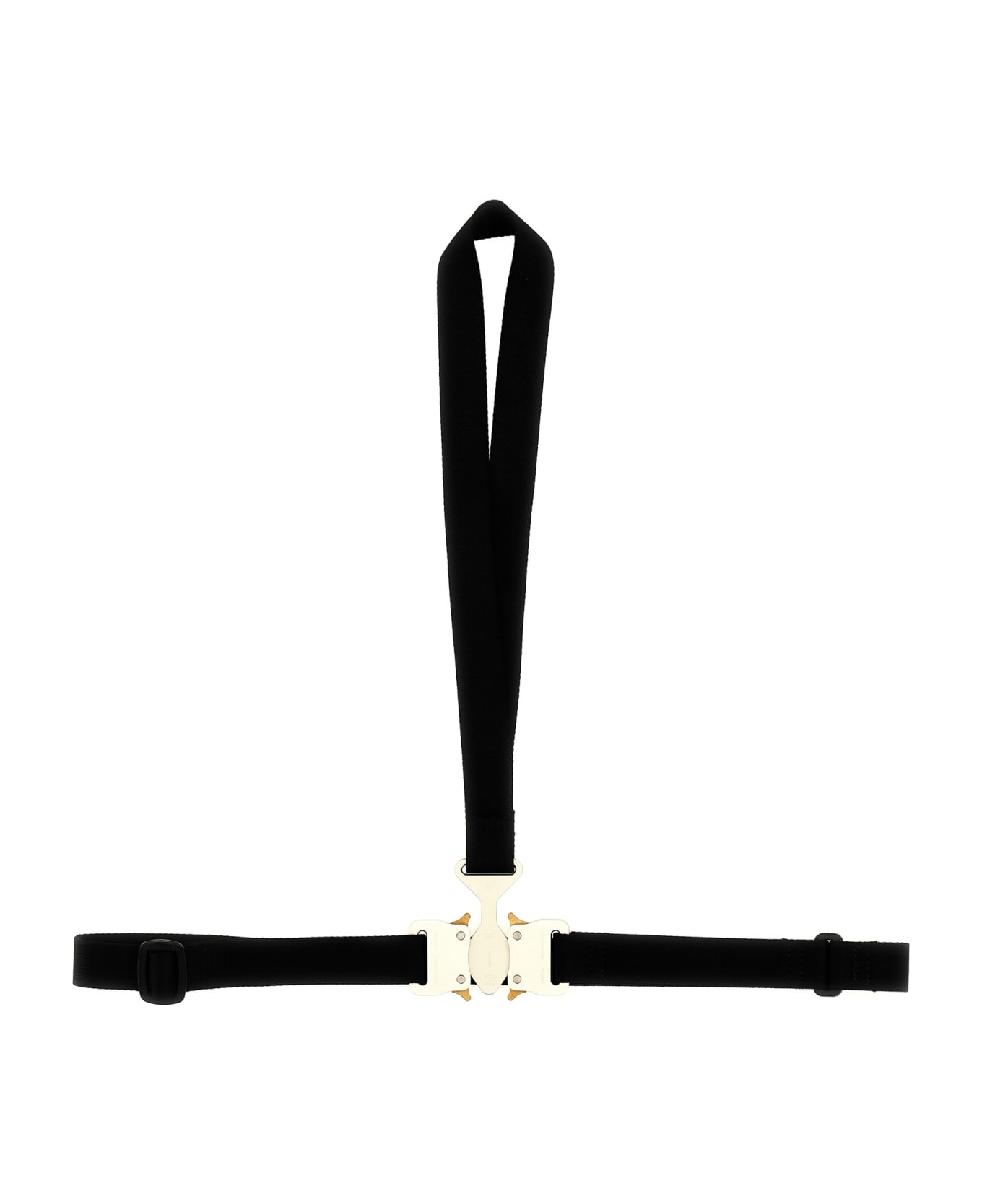 'Tri-Buckle' harness in solid color tape fabric with silver metal details.