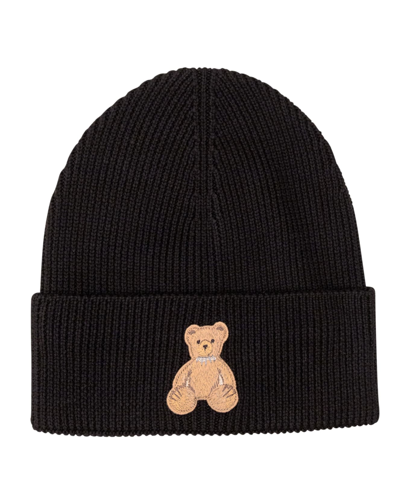 Black wool cap. Ribbed. PALM ANGEL logo printed on the front. Composition: 100% Wool