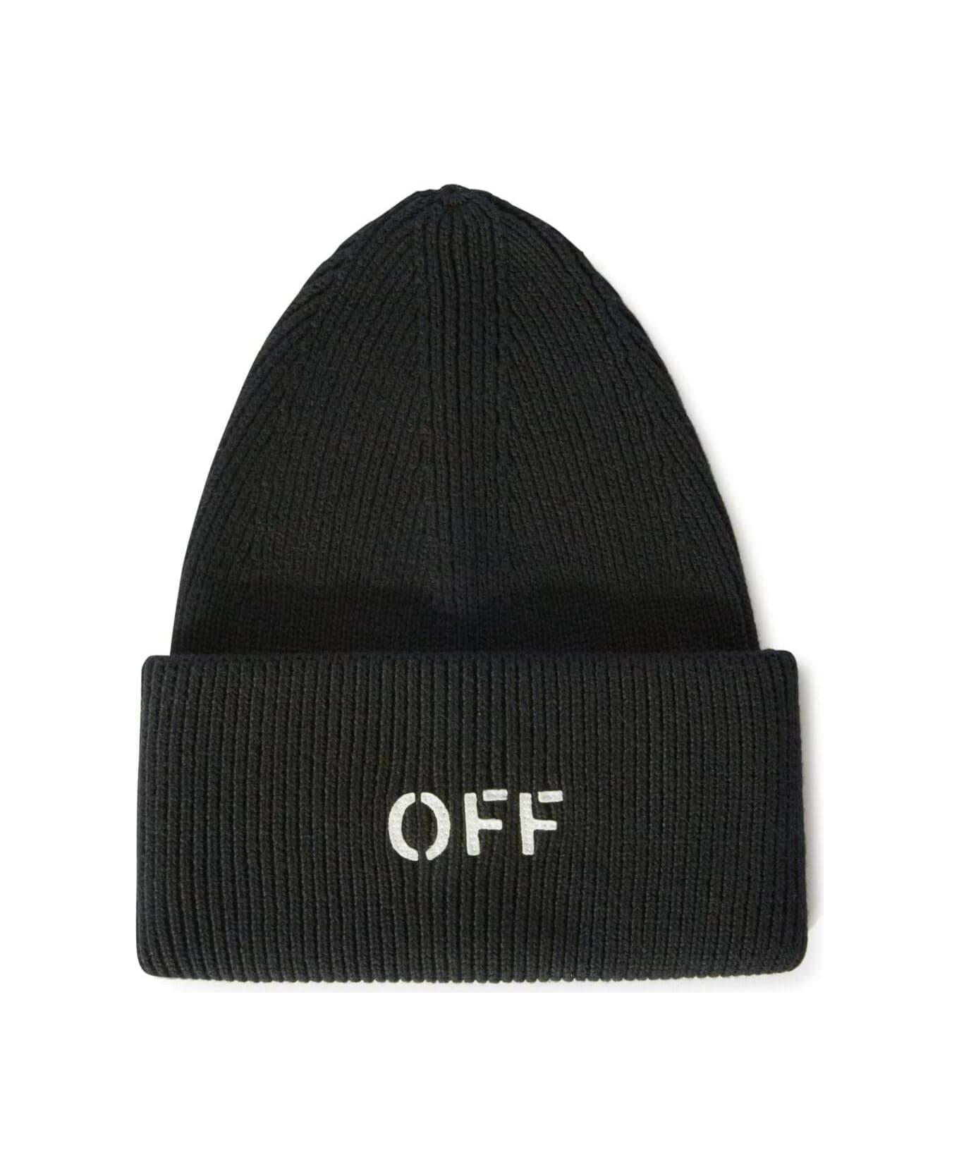 Off Stamp Loose Knit Beanie Black White