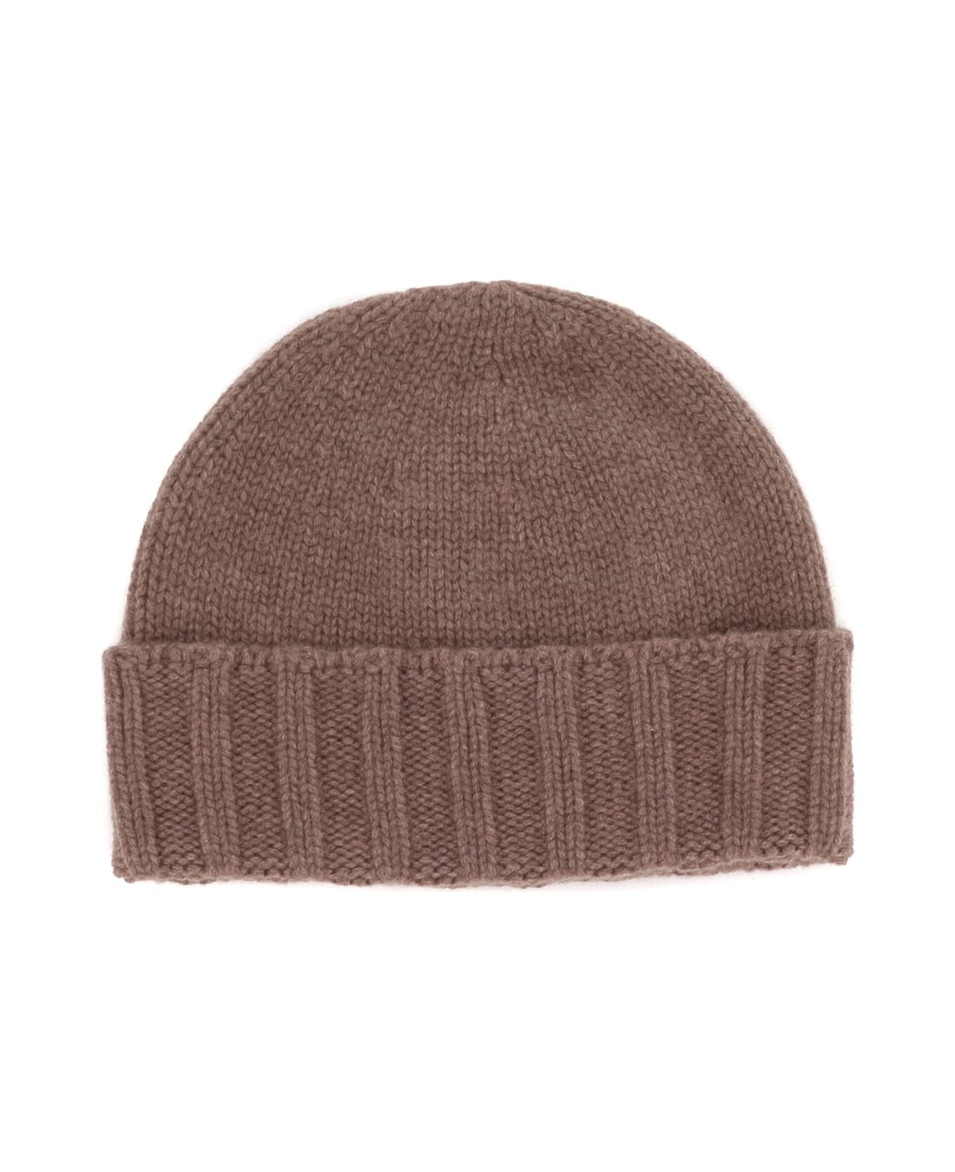 Drumohr Brown cashmere hat, ribbed cuff.