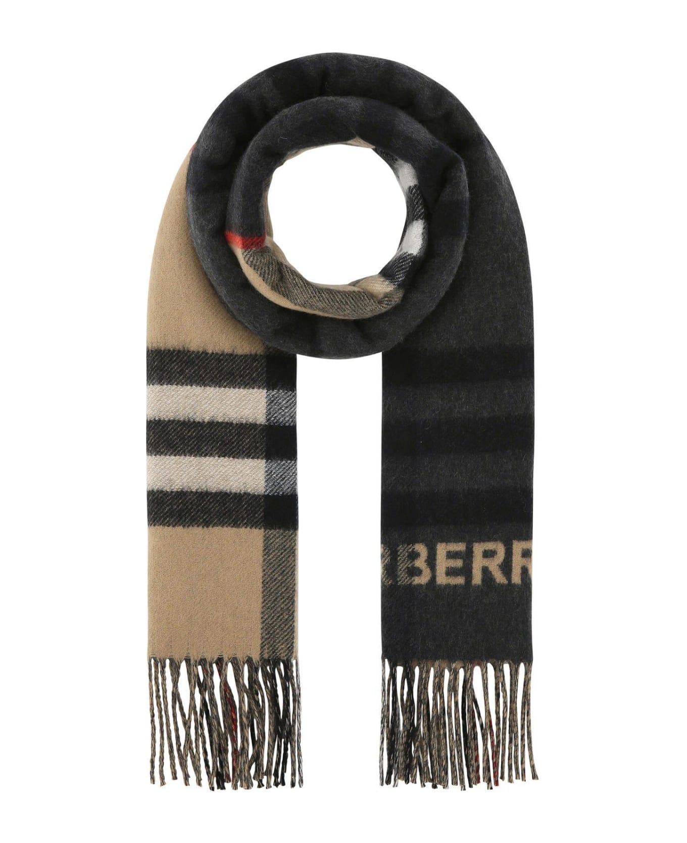 Scarf realized in pure cashmere characterized by tartan motif embroidery on the entire surface. - Fringed ends Composition: Exterior: 100% Cashmere Made in Scotland