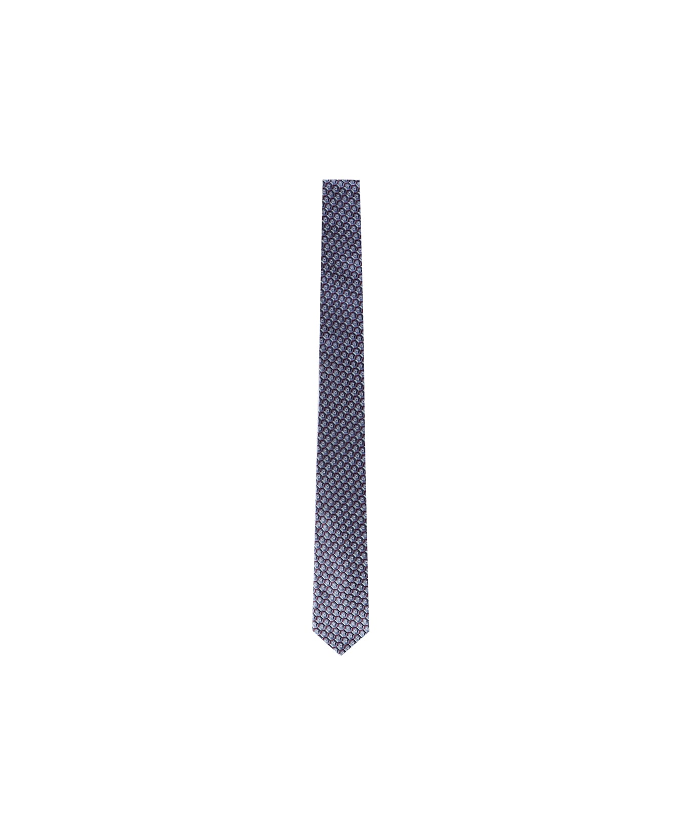 Blue, red Gancini Jacquard Tie from Ferragamo -Embroidered design tie -Gancini print -Jacquard motif -Pointed end -Made in Italy -Colour: Blue, red -100% Silk