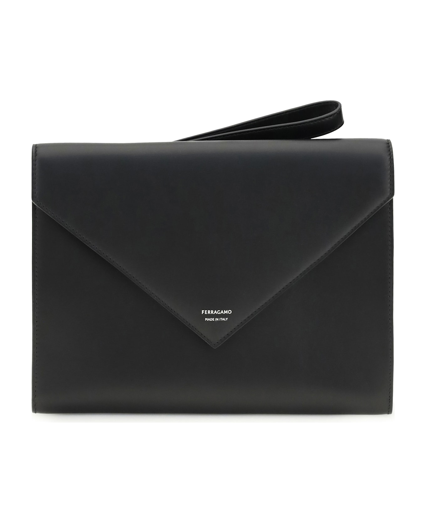 The florence document holder by salvatore ferragamo is an elegant and functional accessory, featuring a refined envelope construction with a flap and snap button and palladium-finish signature. the interior, organized with practical slots and a flat back pocket, ensures organization and practicality, while the removable strap on the back enhances its versatility, making it ideal for any occasion.