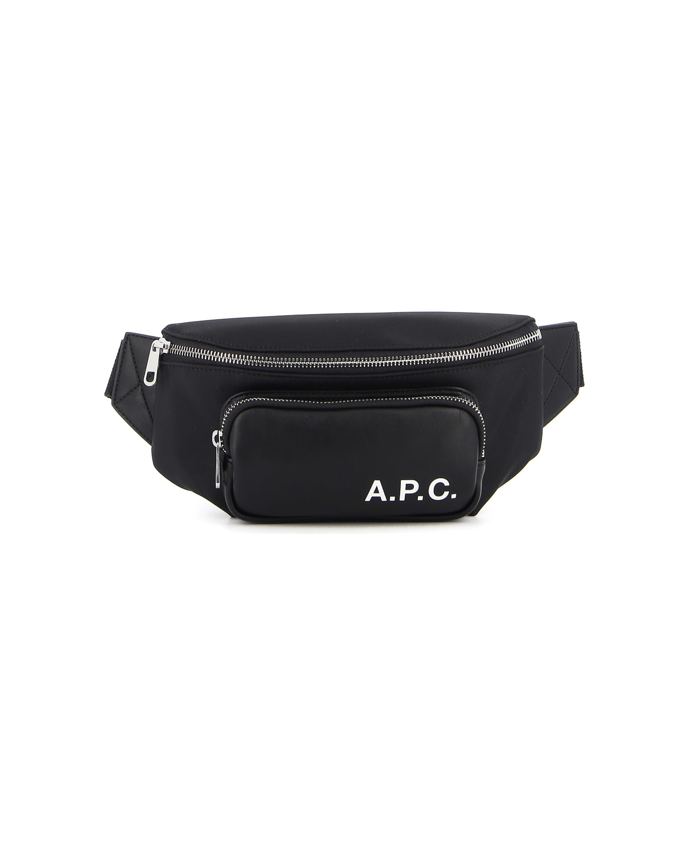 A. P. C. Nylon gabardine belt bag, with zip pocket in eco-leather, zip and logo printed in contrast, nylon lined interior with pocket, belt in technical fabric with snap-hook closure, silver metal inserts.