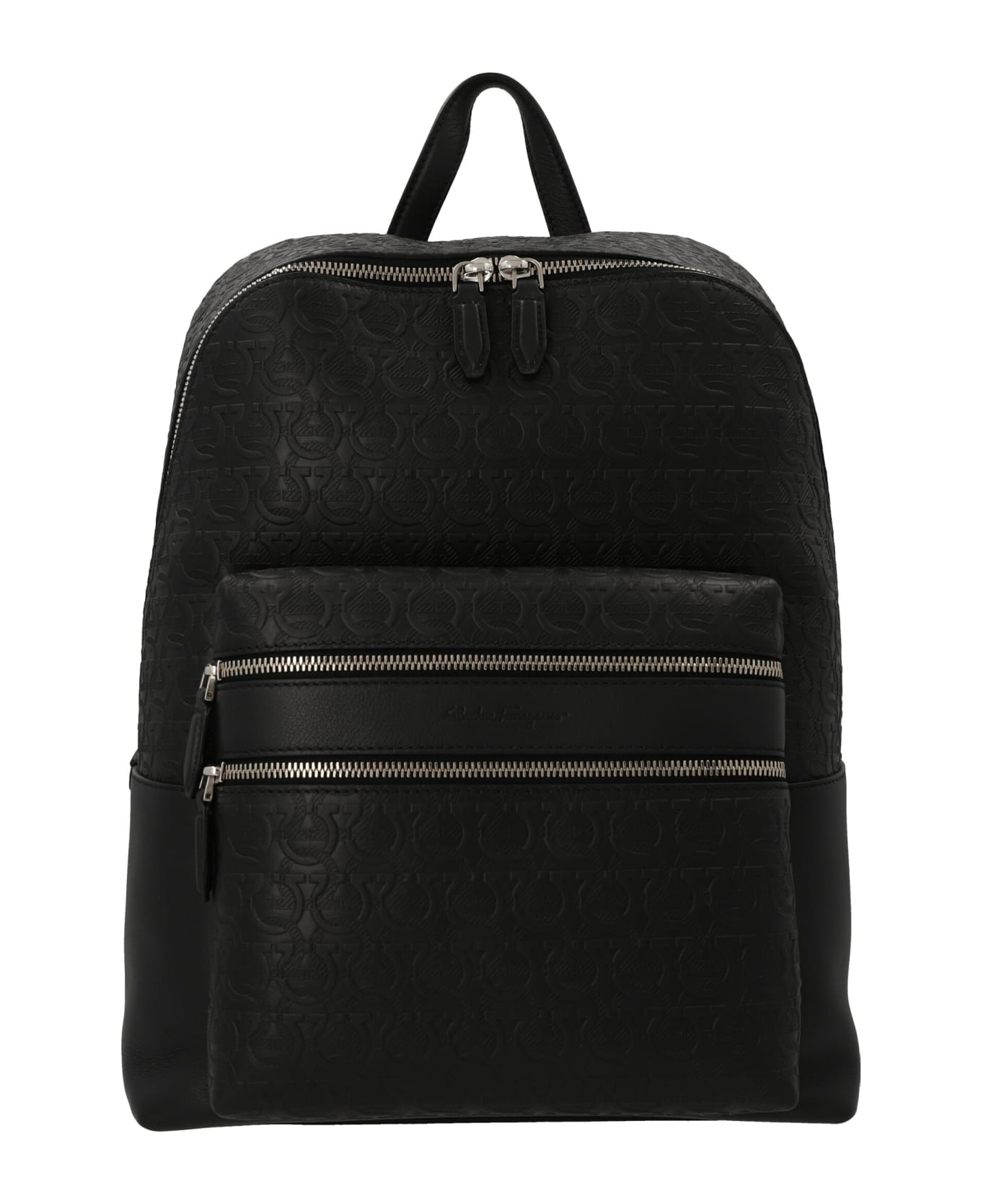 Travel leather backpack featuring an all over embossed logo, a zip closure and adjustable shoulder straps. Composition: 100% leather