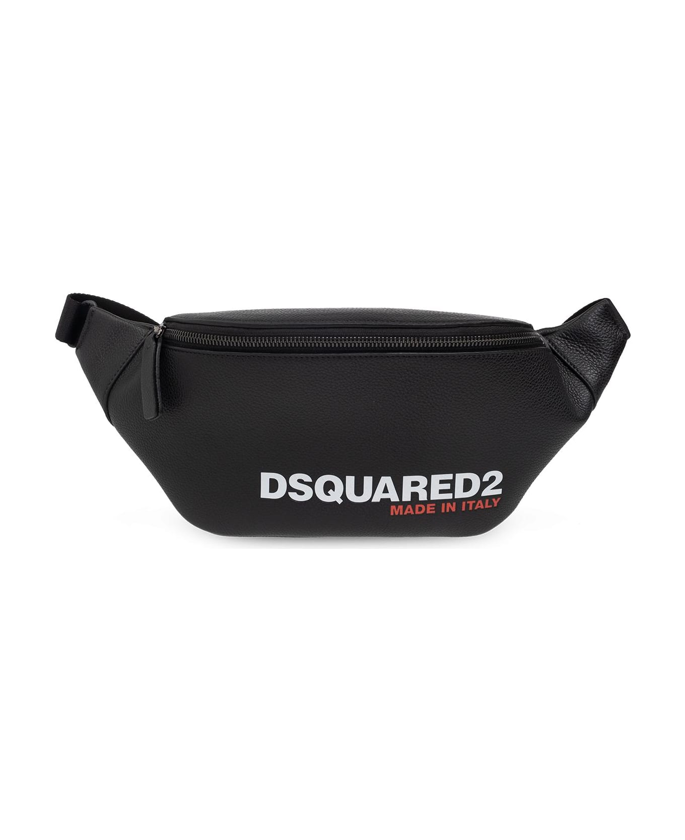 Black belt bag from Dsquared2. Made of leather, this model features a zip fastening, printed white and red logo on the front, zip pocket at the back, adjustable belt and one internal compartment with one slip pocket.