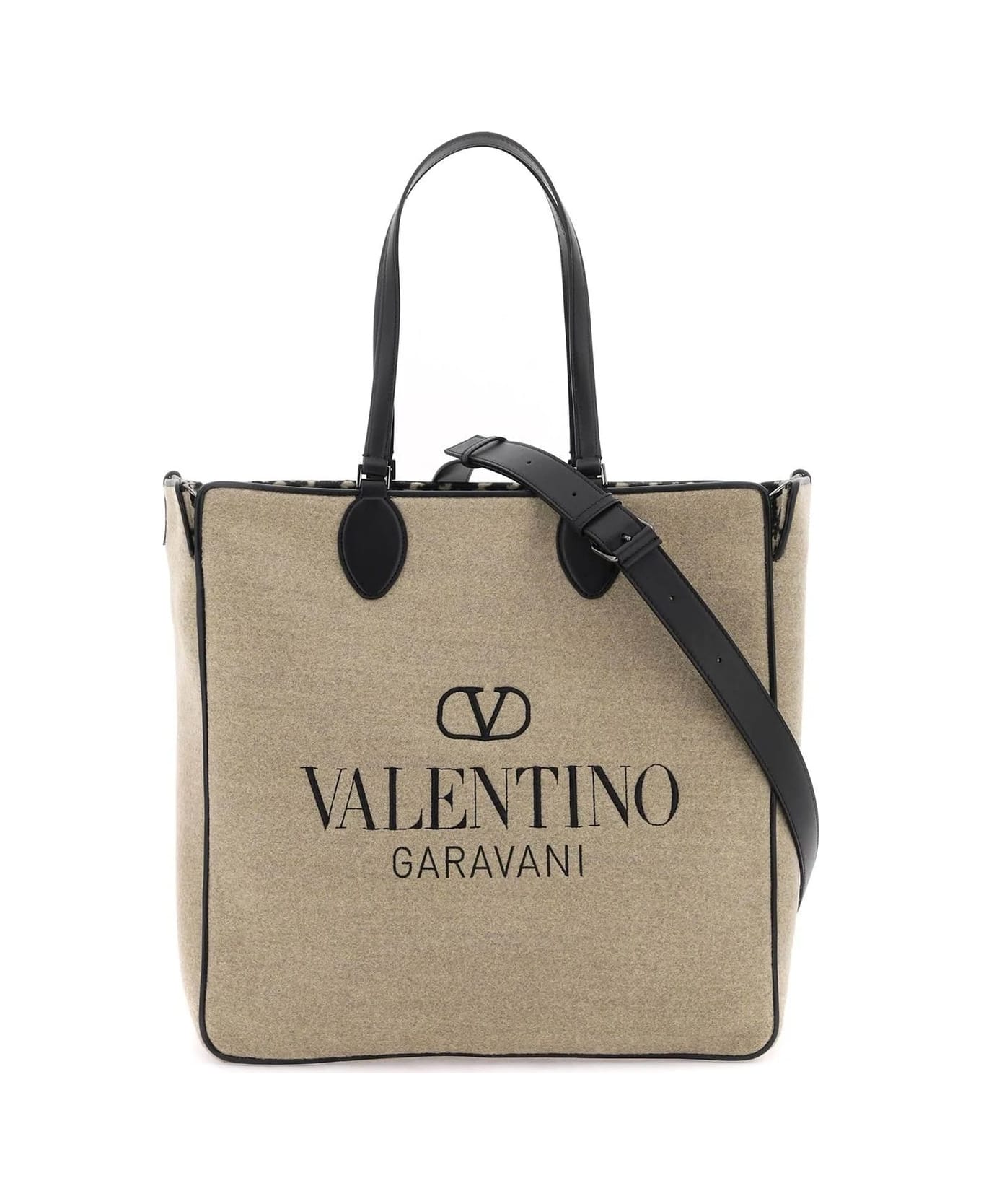 Composition: 100% Wool Lining: Wool Leather detail Two top handles Internal removable pouch Front embroidered logo detail Width 15 cm Length 38 cm Adjustable and removable leather shoulder strap Internal Vlogo monogram Height 37,5 cm Made in Italy