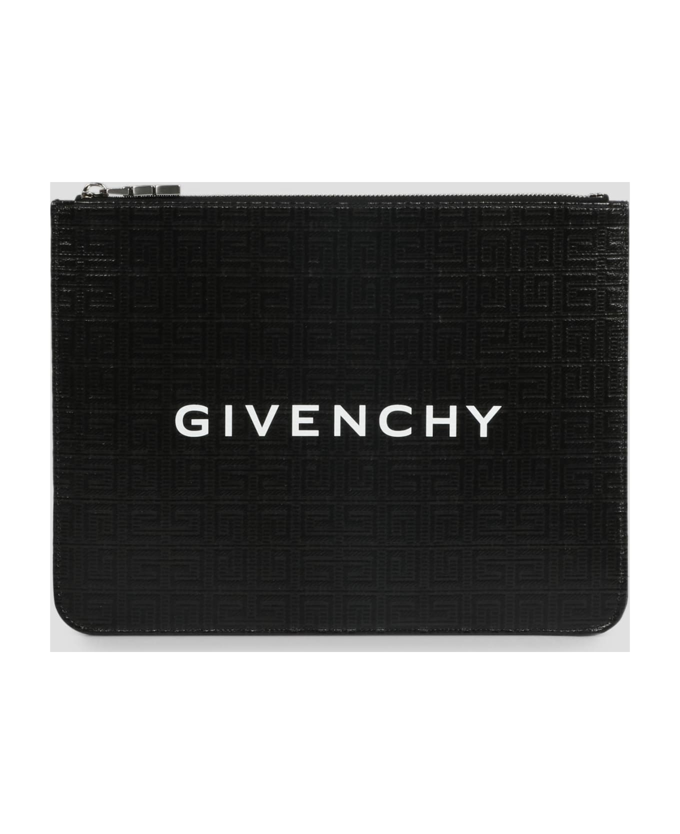 Givenchy large 4G coated canvas pouch with logo printed on the front. - W: 30 cm H:23 cm D:1 cm - Zipper closure - Inner flat pocket - Made in Italy - 74%Cotton 13%Acrylic 7%Polyurethane 6%Other fiber