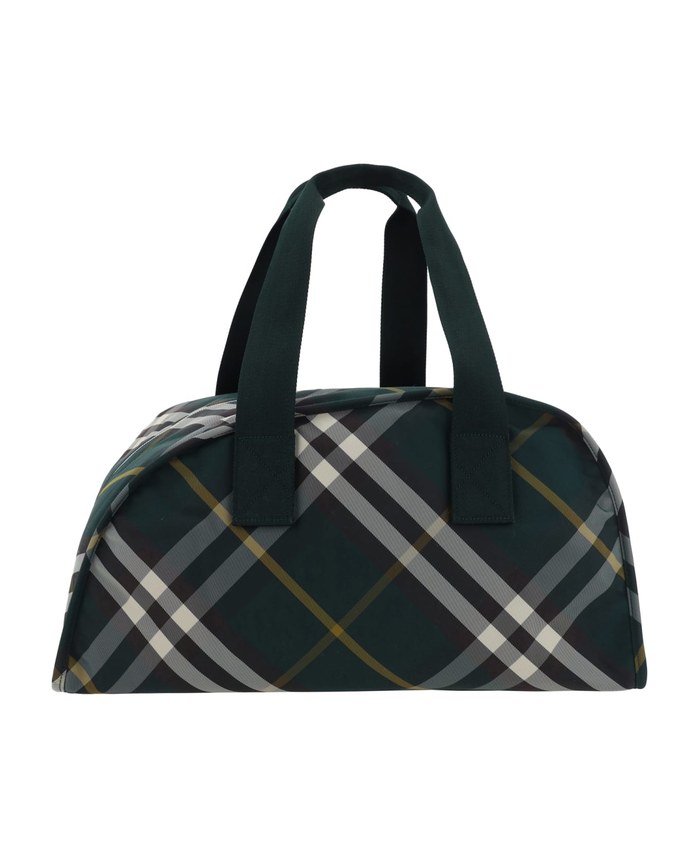 Holdall travel bag by burberry, double flat nylon handles, top zipper closure, iconic all-over check archivio pattern, large single interior compartment, interior zippered pocket, unlined, topstitched trim. Composition: 100% % Polyamide