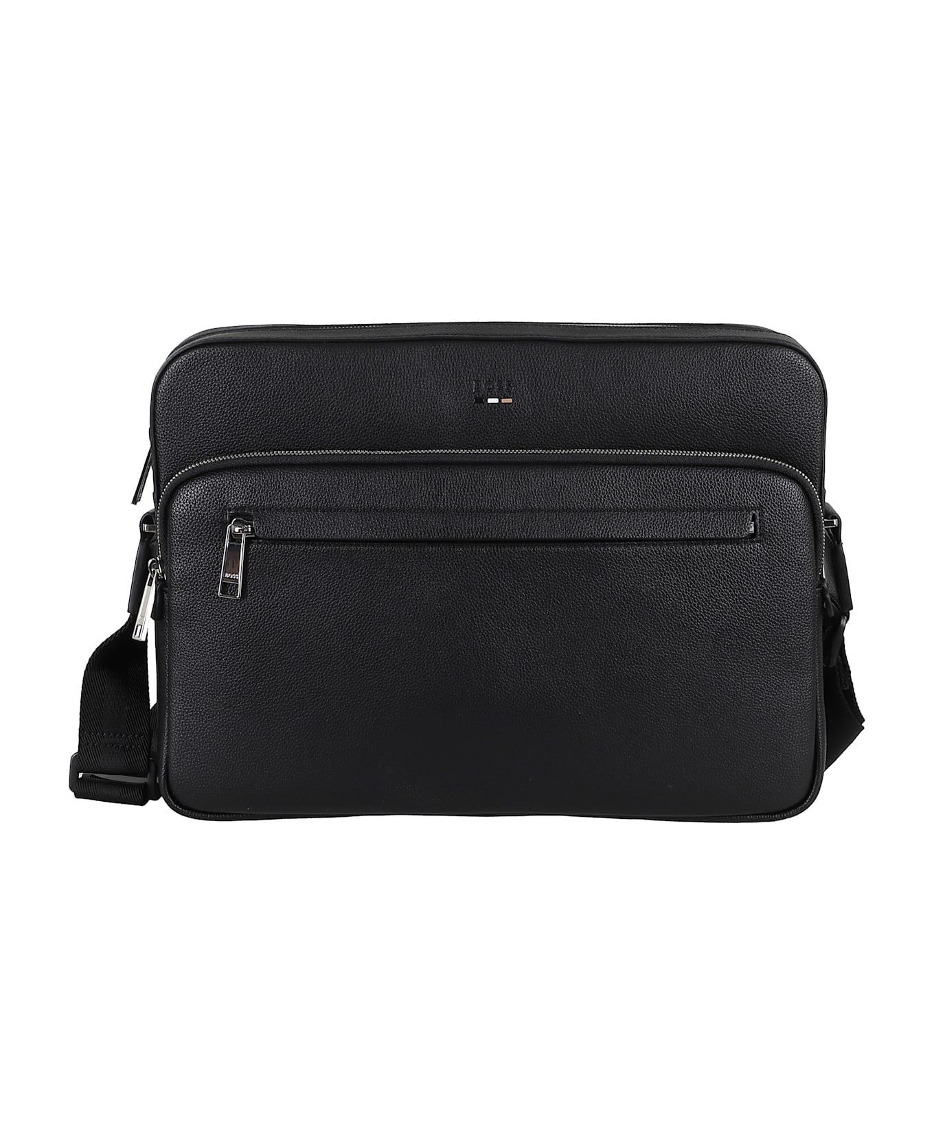 Ray Zip Messenger Bag - Boss - Black color - Made of grained faux leather - Document holder model - Double front zippered pocket - Adjustable fabric shoulder strap - Top zippered closure - Dimensions: 36 x 26 x 6 cm.