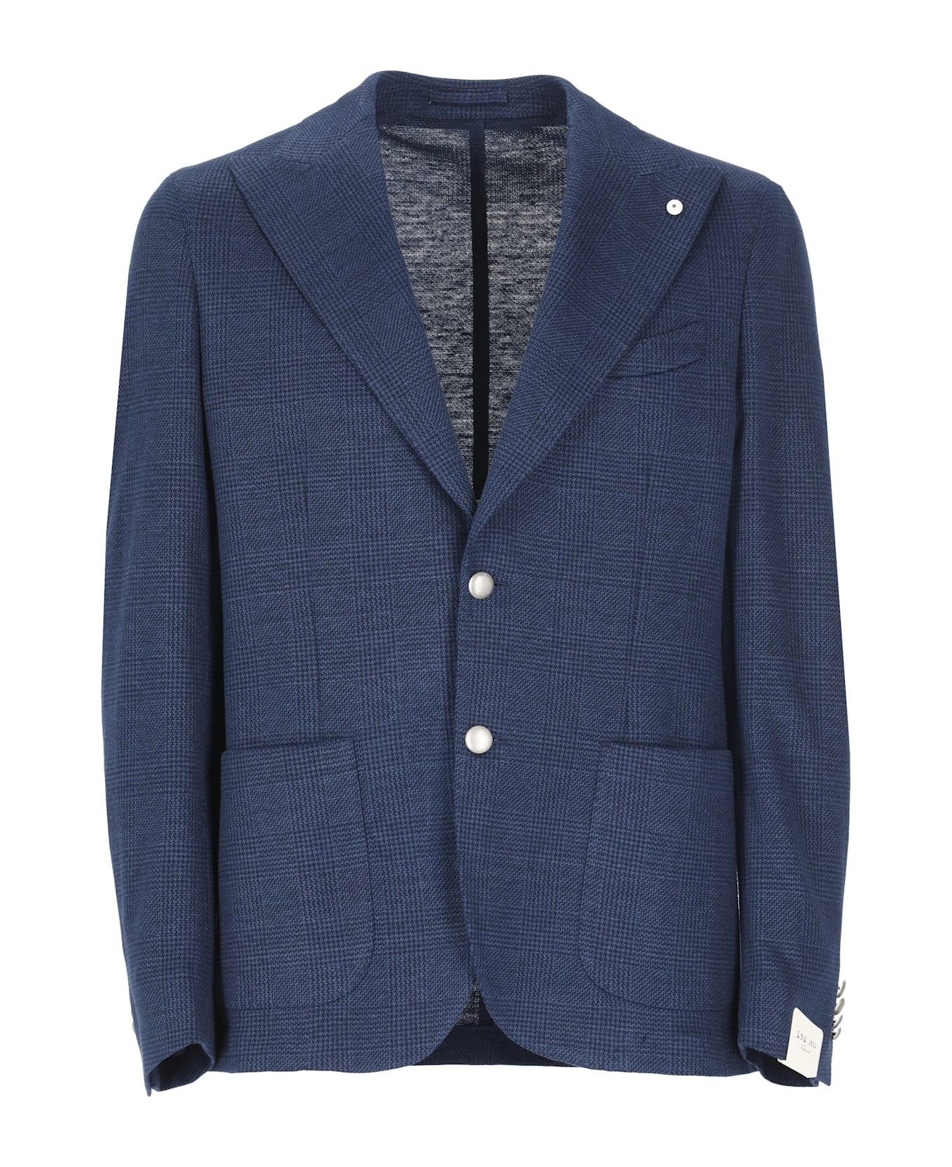 - Blue Lubiam cotton and linen jacket for man - Peak lapel collar with iconic Lubiam button at neck - Long sleeves with buttons - Front buttons fastening - One front welt pocket - Two front welt pockets - Two rear vents at hem