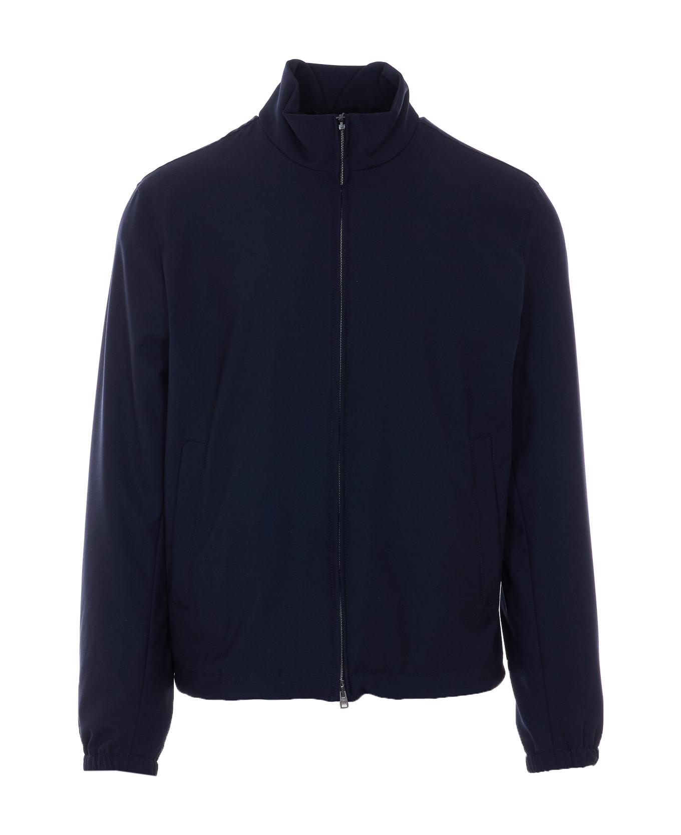 Herno blue bomber with frontal zip closure, long sleeves, high neck, pockets with button closure, long sleeves Composition: 64% Polyester, 30% Wool, 6% Elastane