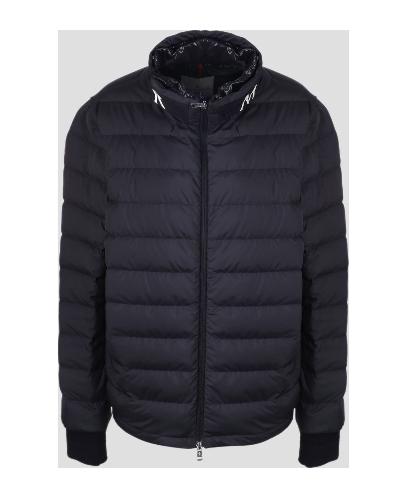 Moncler Akio short down jacket, in boudìn quilted recycled nylon. - SS23 - Regular fit - Contrast Moncler lettering embroidered on the collar - Removable hood - Zip closure - Side zip pockets - Logo patch on the left sleeve - Elasticated ribbed knit cuffs - Elasticated hem - Made in Moldova - 100% Polyamide