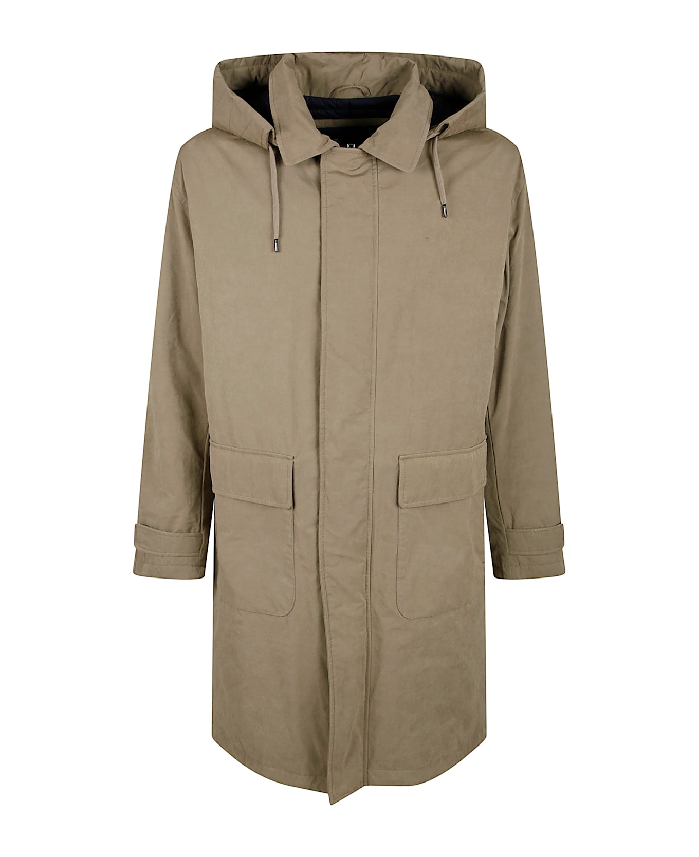 Long parka in technical fabric made from a premium blend of natural yarns and technical fibers, including nylon and polyester, by HERNO. Shirt collar; removable hood; flap pockets; zip and snap closure; belted cuffs; down padding; regular fit; back vent. Featuring a metal Herno logo on the back and the tactile feel of velvet and waxing, the texture lends a warm, enveloping, and captivating touch.