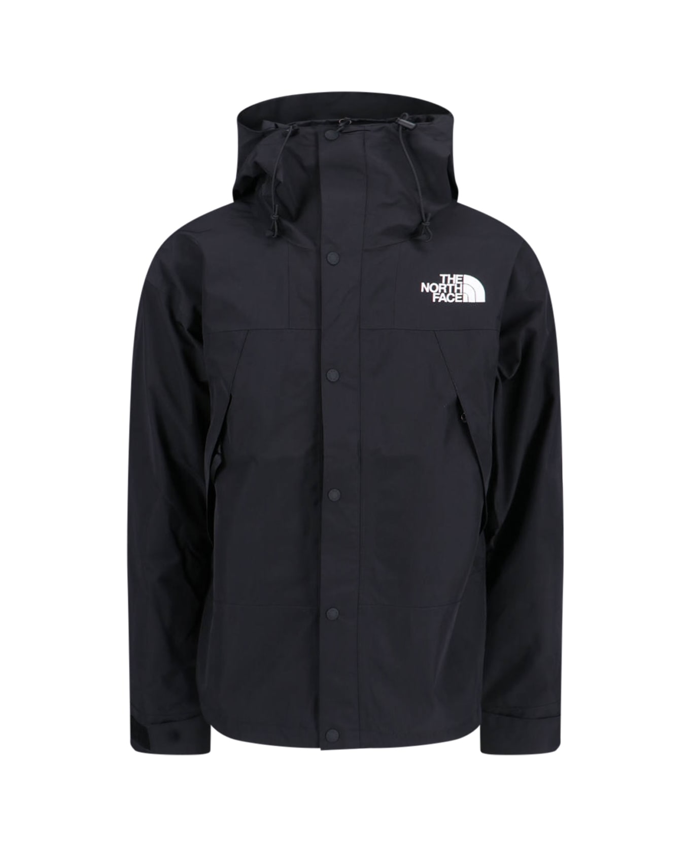 The North Face 'Gore-tex® Mountain' jacket in black water-repellent fabric with drawstring hood, high neck, button closure and hidden zip, adjustable Velcro cuffs, contrast embroidery detail, contrast logo embroidery at the front and back, two side zip pockets, drawstring at the hem, straight hem.