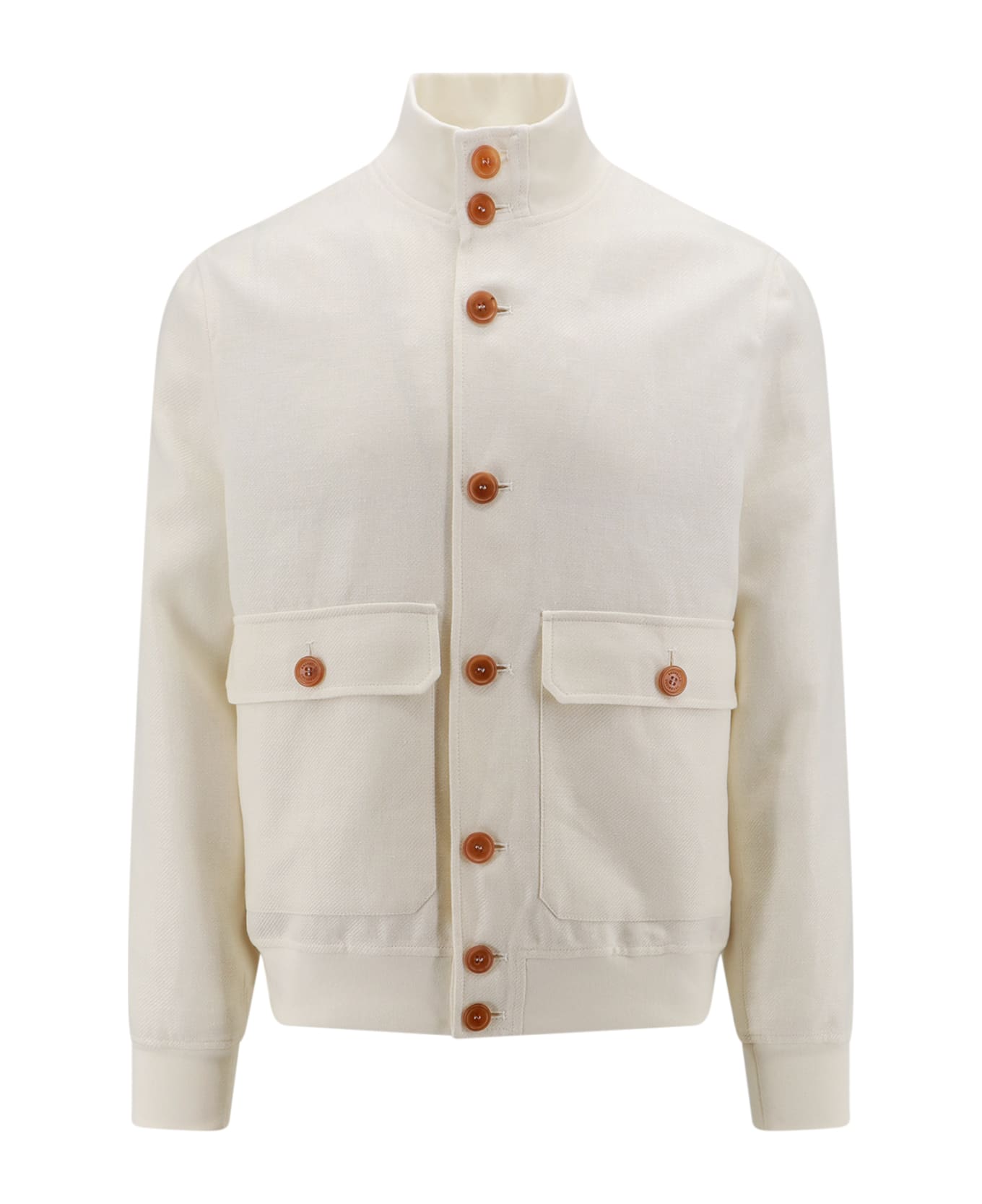 - Closure With Buttons - Frontal Pockets With Flap And Button - Ribbed Stretch Profiles - Made In Italy - 74% Linen 24% Wool 2% Elastane
