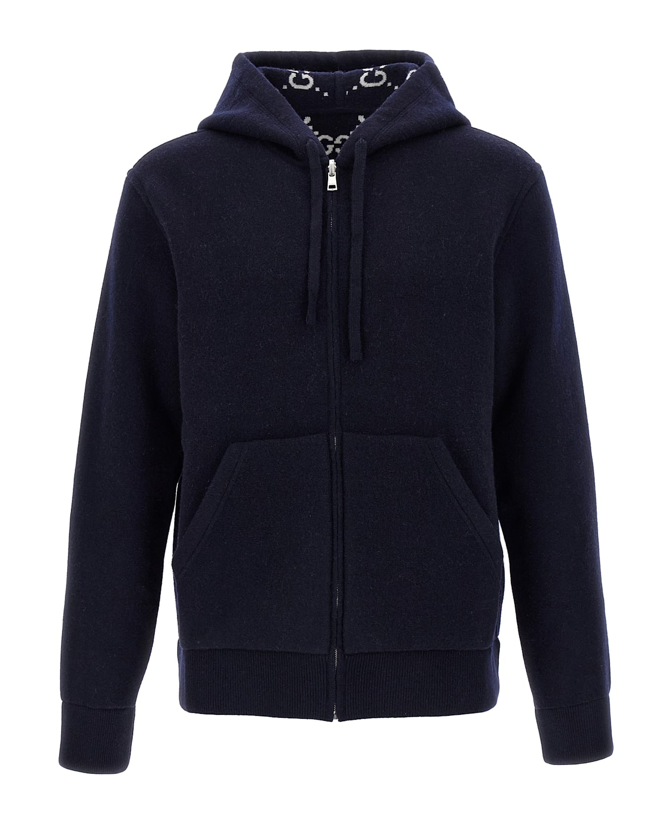 Reversible jacket in solid wool and GG monogram jacquard, hood, front zip closure, pockets, long sleeves with cuffs. Composition: 95% wool 4% polyamide 1% elastane