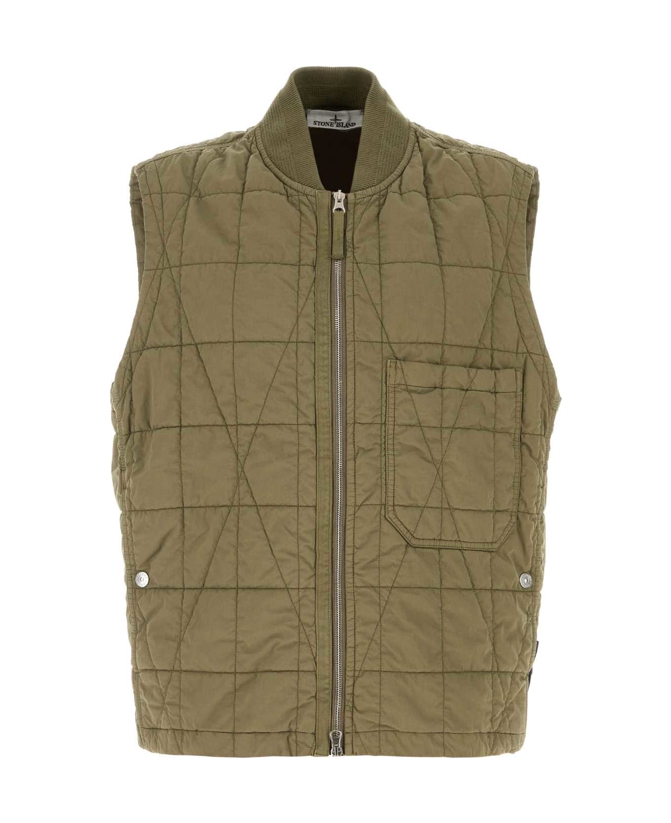 Army Green Cotton Blend Sleeveless Jacket from Stone Island